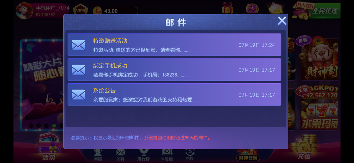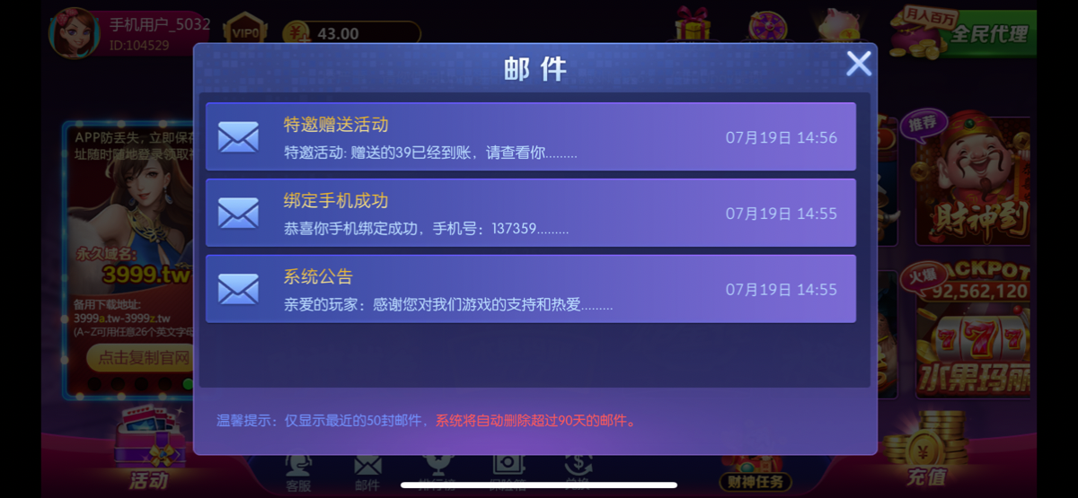 我之前也是给我送了43 打到500以为不可以提现 就全部输了
