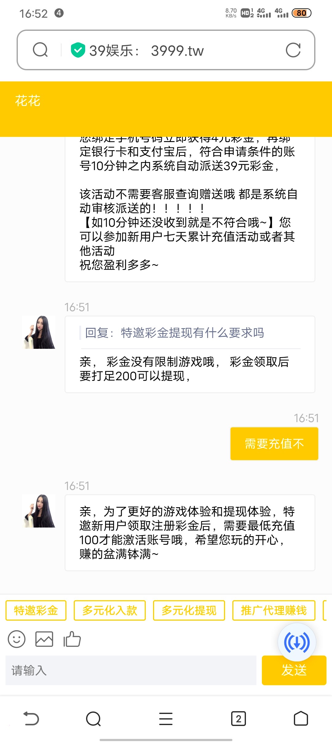 送了,也打到200了,说要充值,靠不靠谱有兄弟提现成功的吗