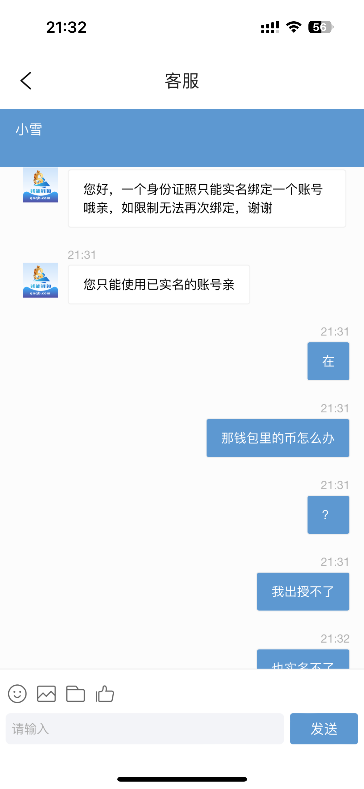 今天我打白嫖一套600提现,忘了上一个钱能账号了,又注册了一个,实名了基础实名,发现人脸实名不了问客服才知道一个人只能实名一个钱能,但是平台打钱都到了,现在卖不了也不知道怎么搞出来,求老哥们帮帮忙