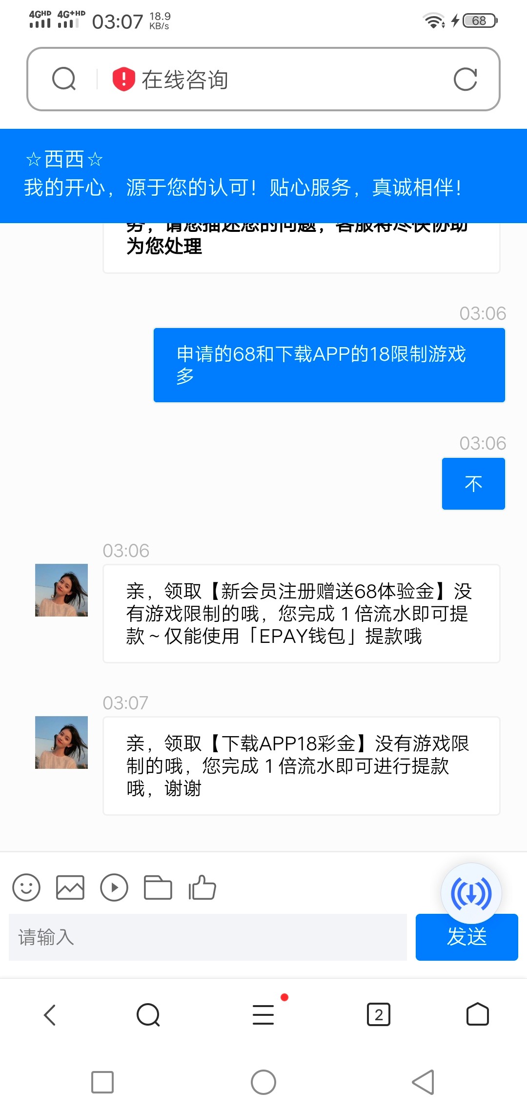 不用去了,客服说送68活动已经结束,App18今天名额已满