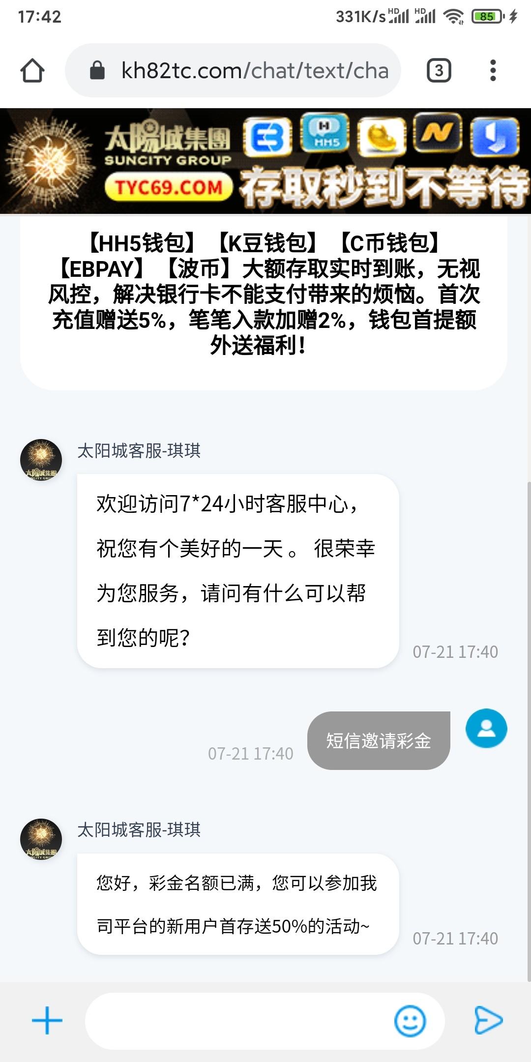 在线 客服申请短信特邀,客服让绑卡再申请,就送了18。