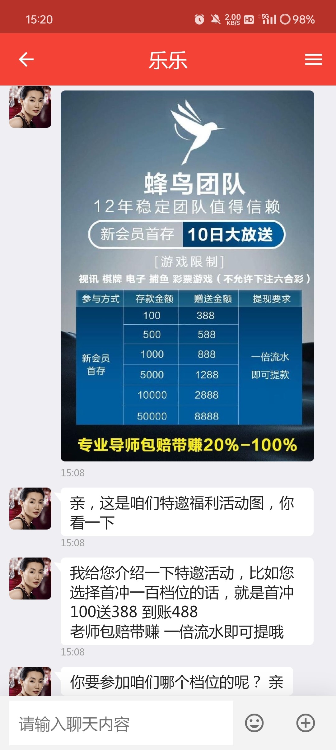 这个撸过几个 就是送的彩金分10天的 388每天38,但是每天要充100,还有三次带赚机会 每个充值档位3次 我最高就撸了充值1000送88的带我赢到1500提了 后面撸了三次带赚之后就没充值了 彩金也不送了说要充值