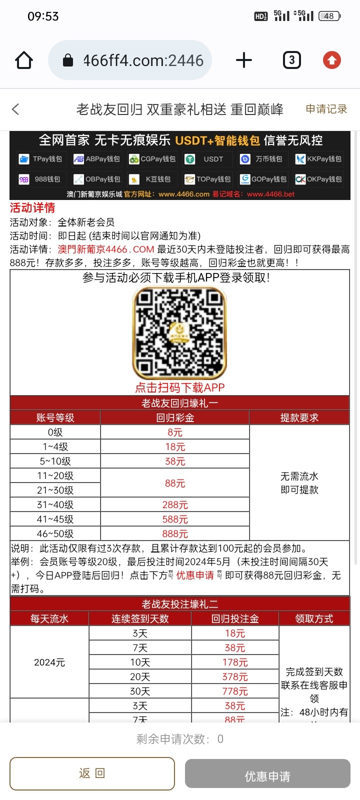 新用户无视,看好要求 30天以上没有过登录投注且有过3次存款100以上的才可以申请 没有就当个乐呵