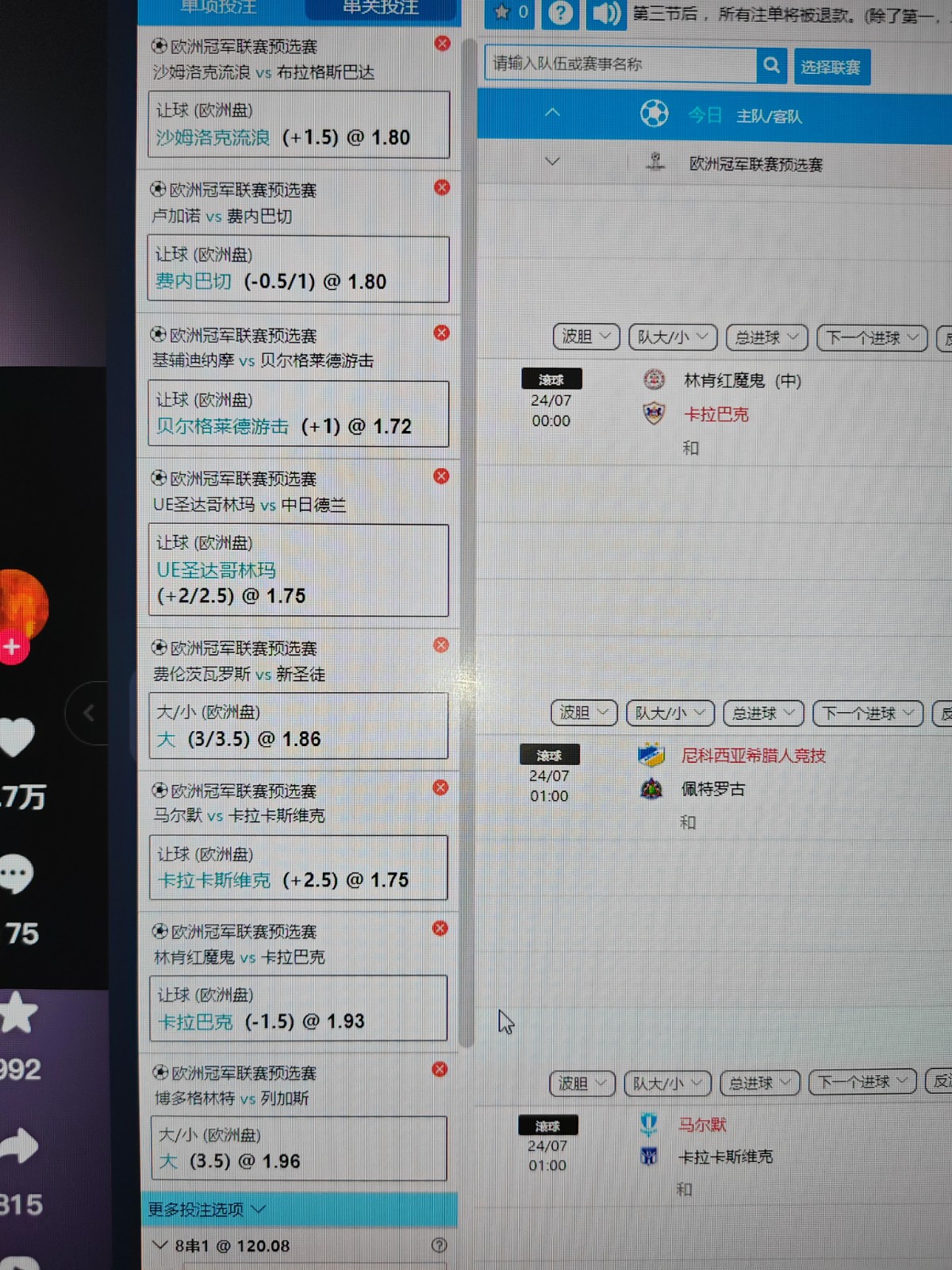 我8串1欧冠我就挂了那个特拉维夫马卡比以色列的,其他基本上都红了,tmd