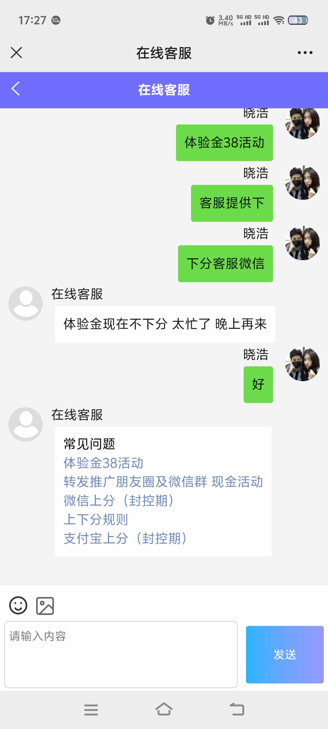 看名字? ▶ 哈哈yy 他的微信发下,在线客服不理人。 2024-7-24