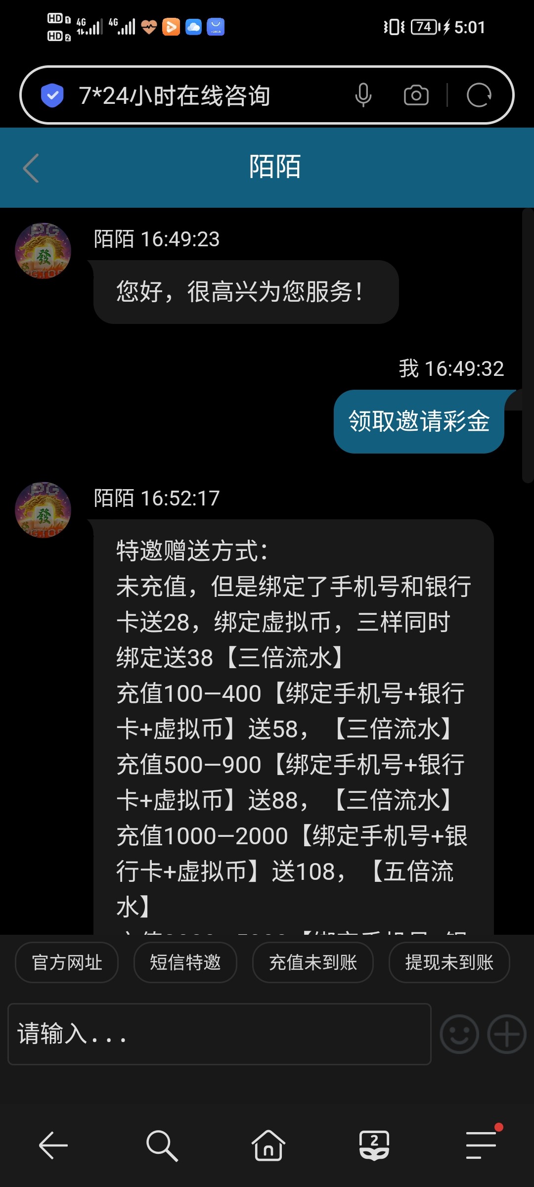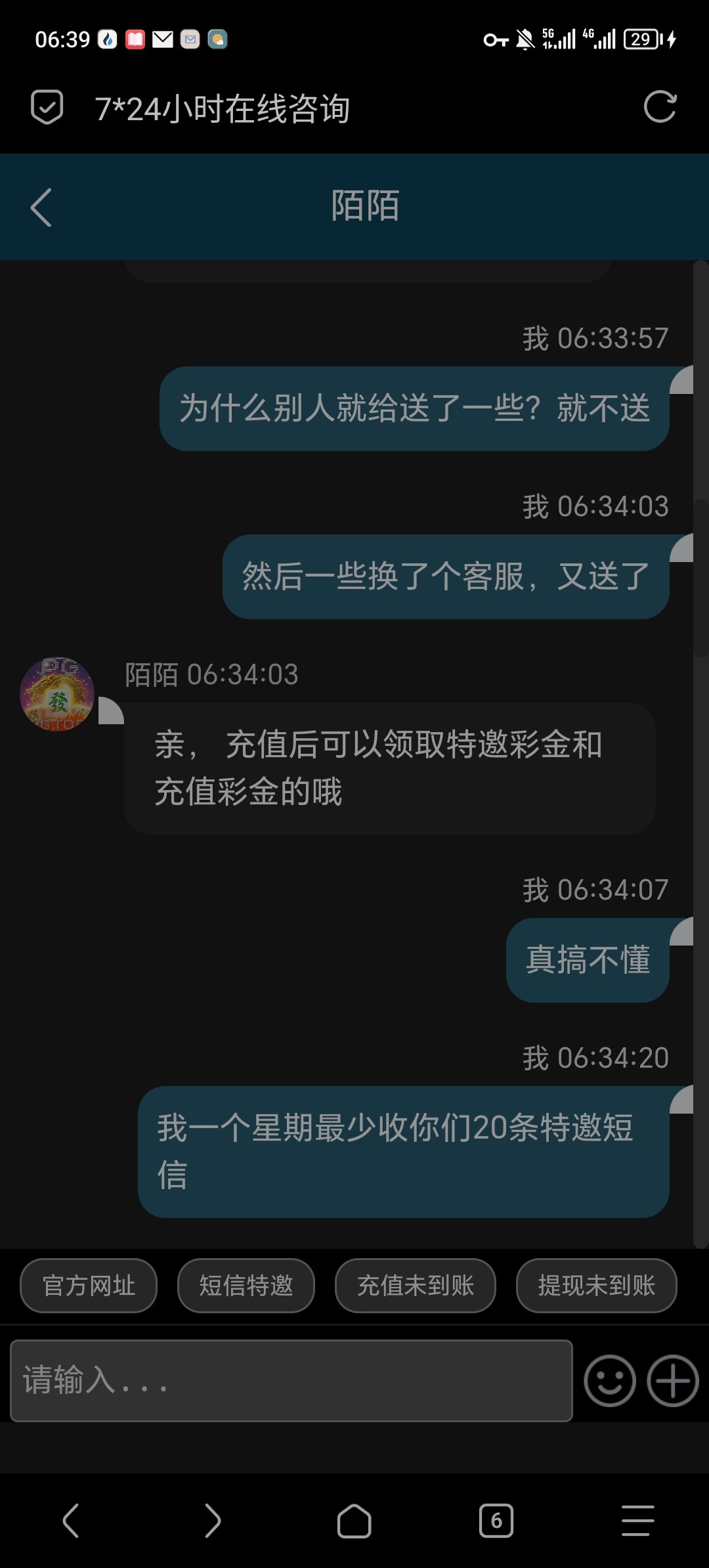 这个陌陌死b客服,要充值,然后我又换了一个客服,才送的