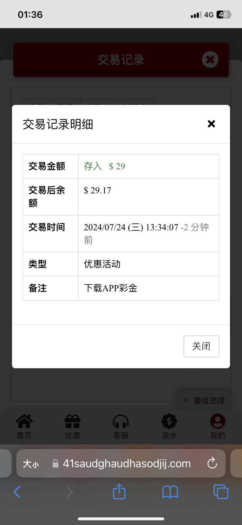 先下载APP在注册,注册弹出显示幸运号码,直接就送了29,都没找客服