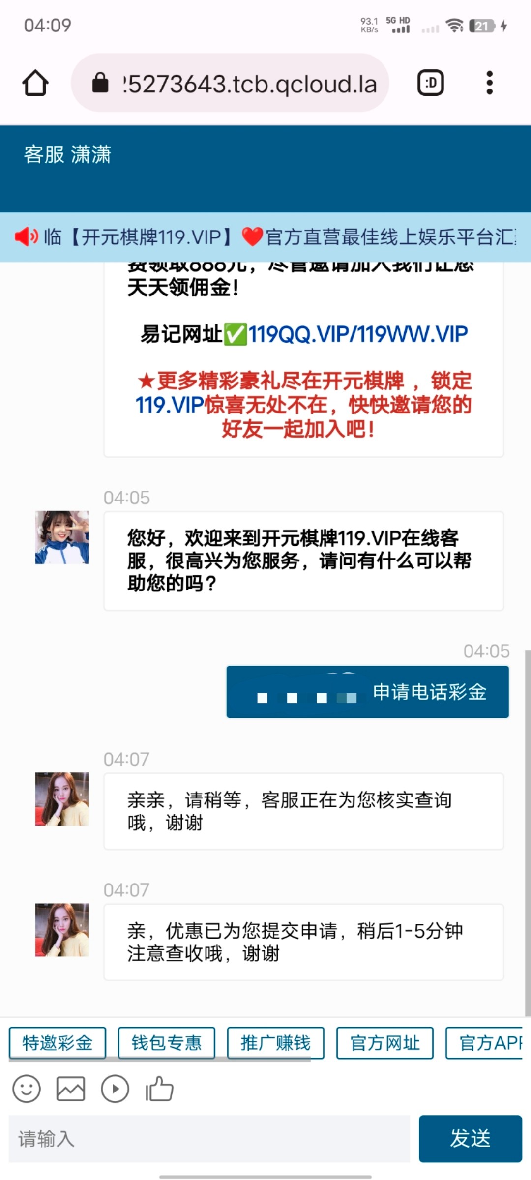 老哥推的开元119,有号的可以找客服申请电话彩金,亲测没接到电话送了,打出来的老哥团个饭要饿死了