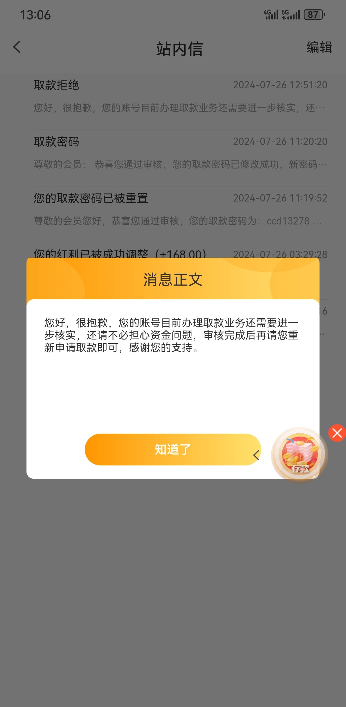 到账了168