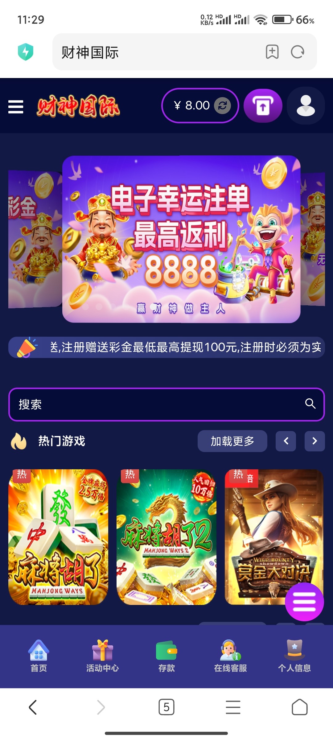 注册就直接送8-38 已经领到
