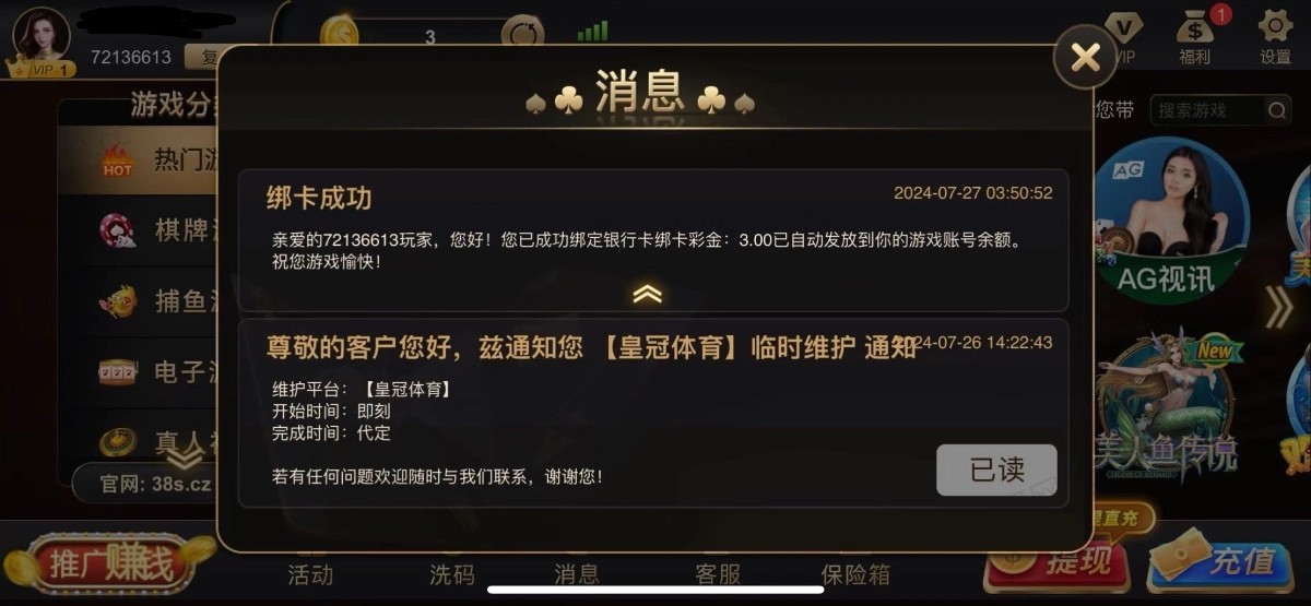 注册绑卡送3彩金随便打什么游戏都行,这种台子一般提现到账都很快就看有没有赌神能打上去100了,打到100提现秒付钱包找钱包客服再送18钱包余额 地址 38s.com