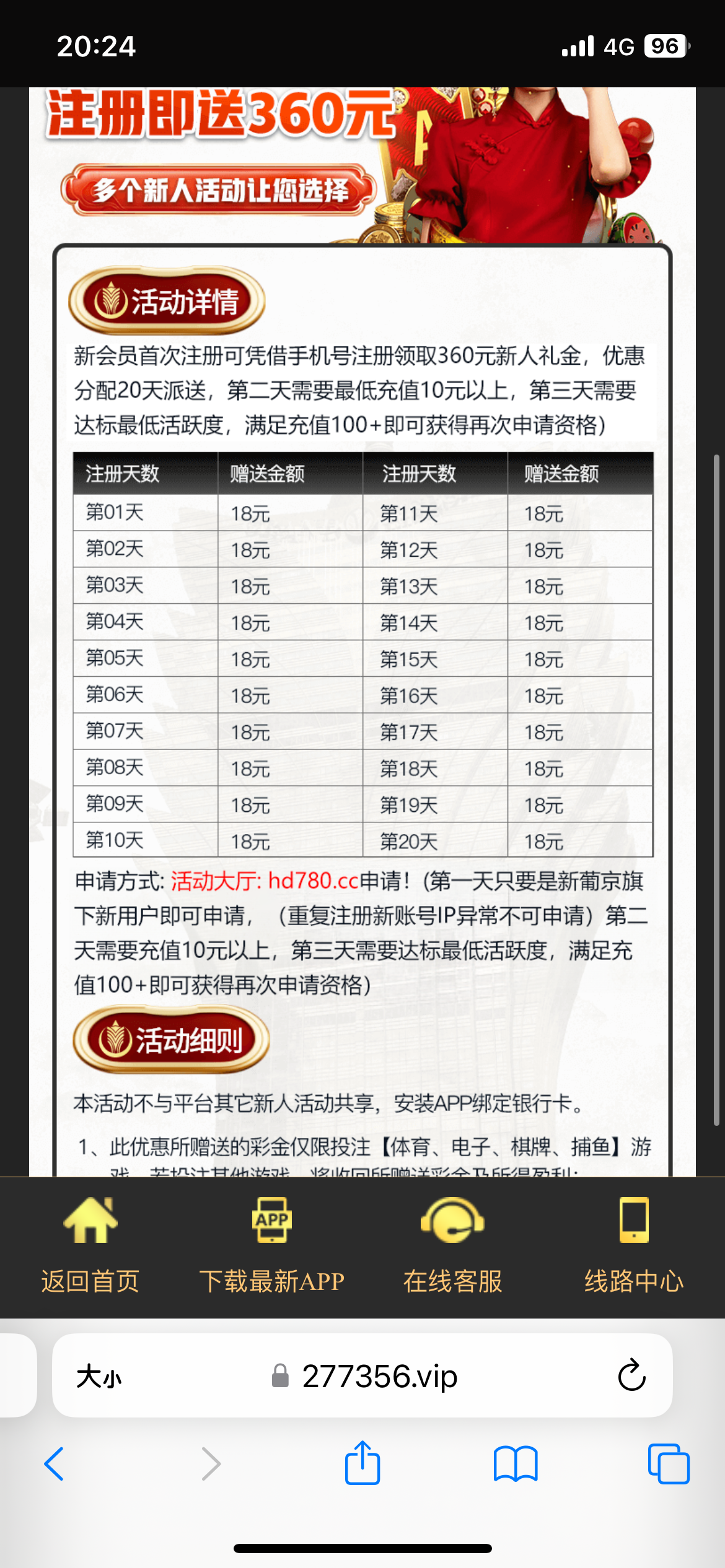 有收到短信的可以去了,亲测送了 新葡京780注册送18第二天有过10充值再送18,我是看到短信去的不过活动写的新会员都可以申请,链接看图,出款自测。