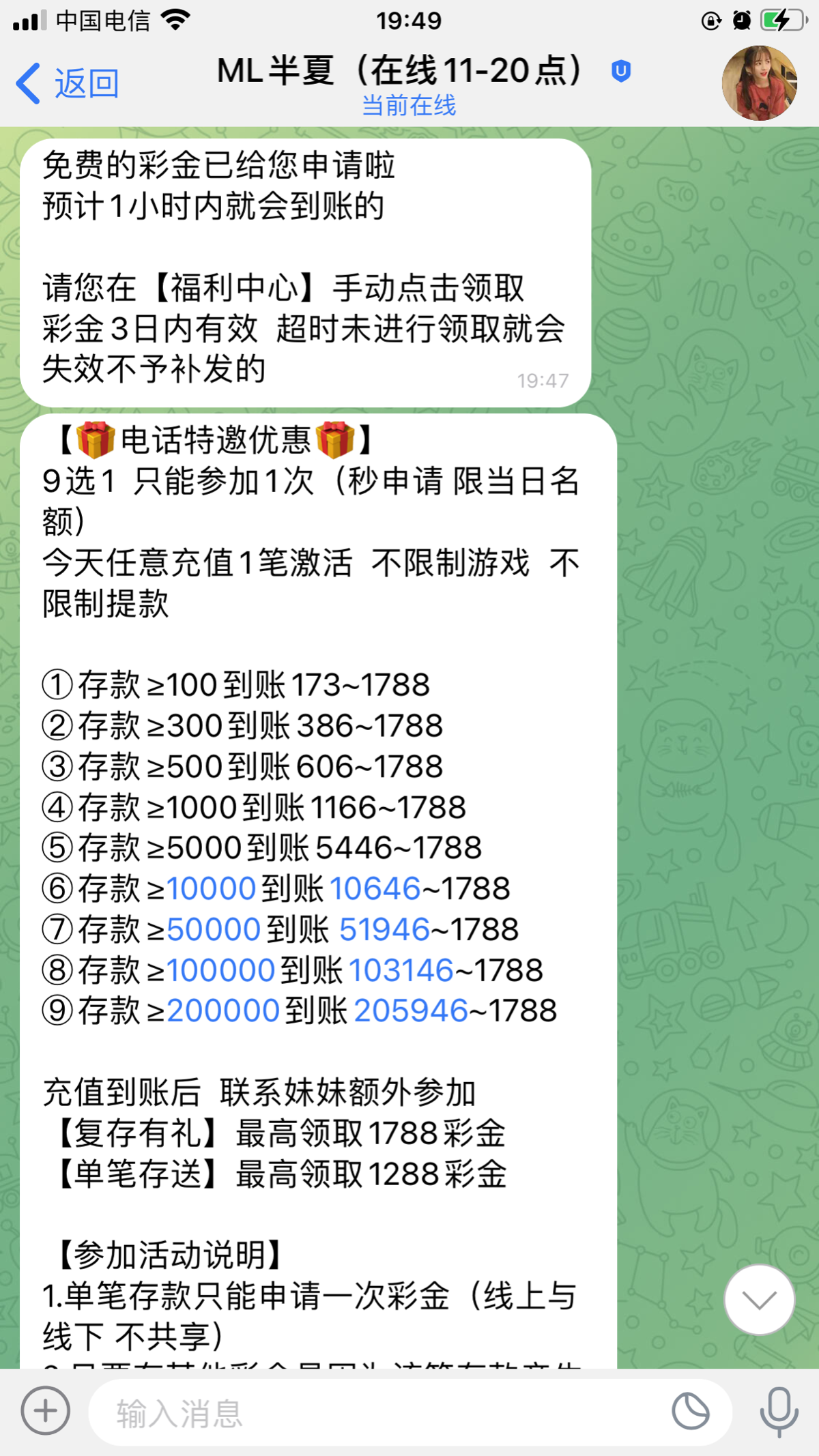 米兰电话特邀58,打上1200提100冻结