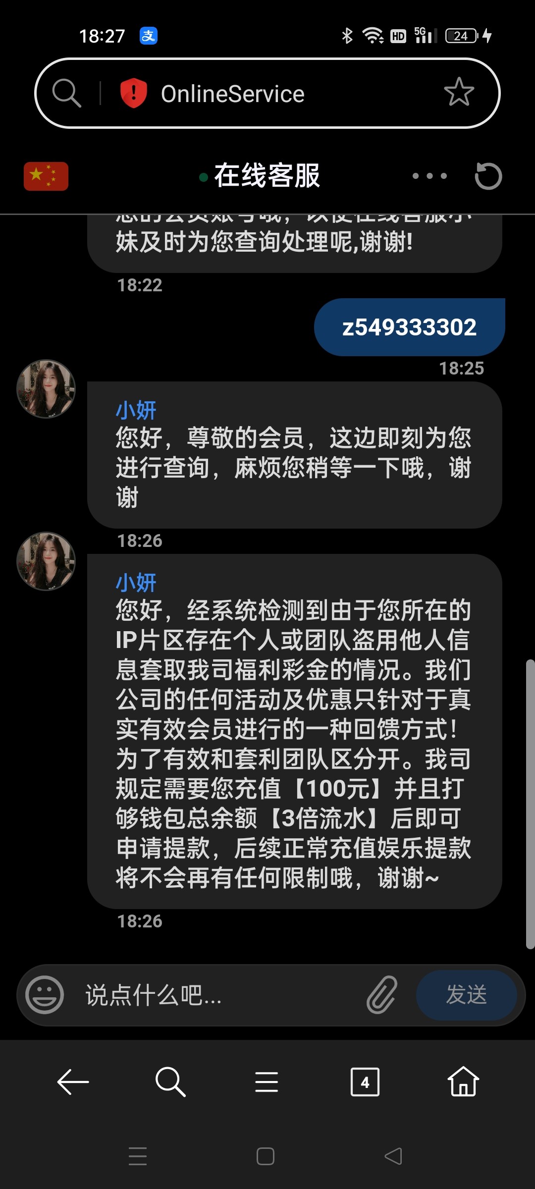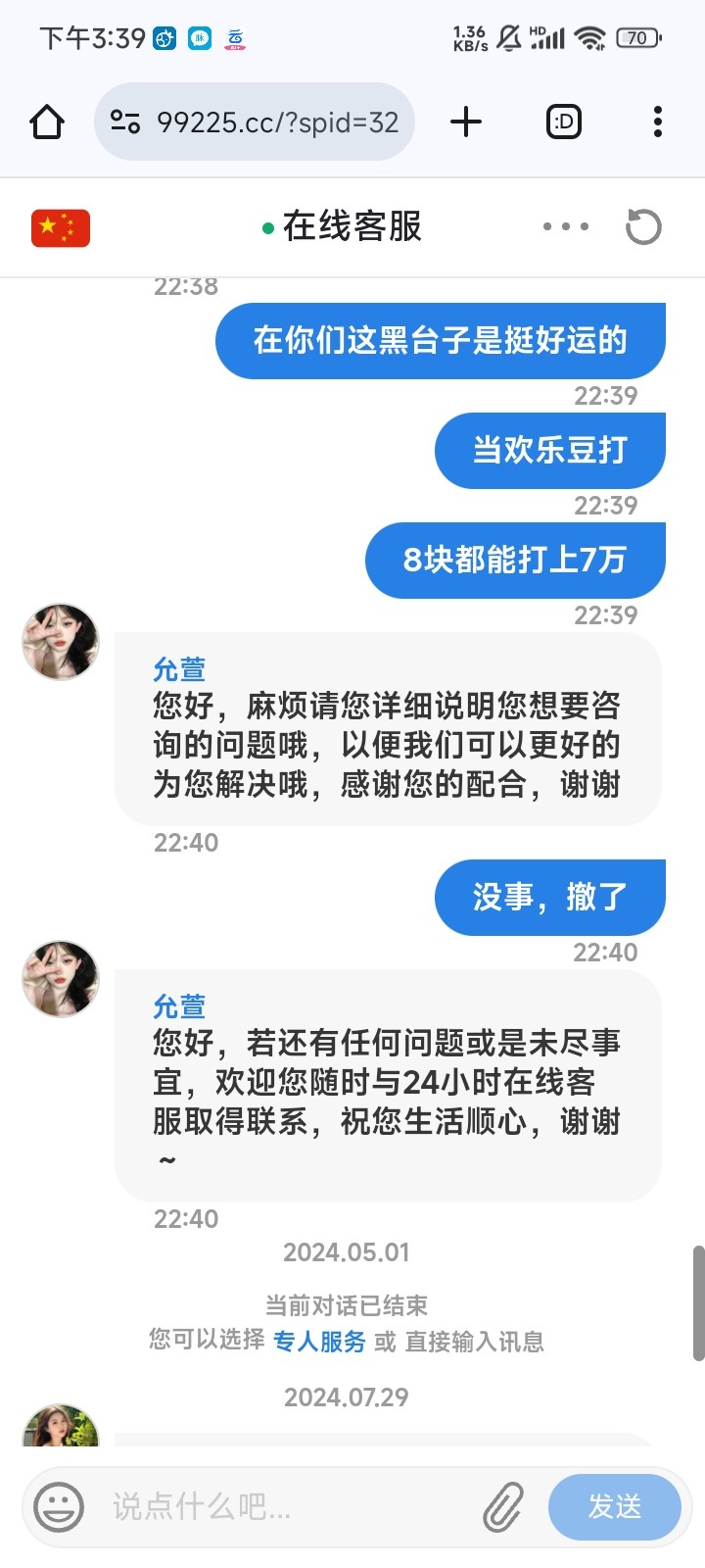 以前的聊天记录居然还在,8块签到打到100不给提,10分钟打上7万,现在18打上300估计也不给