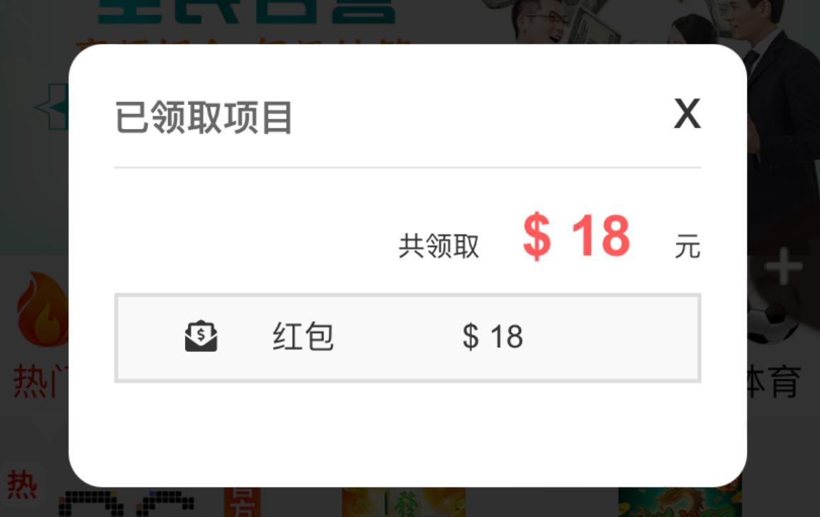 领到了18,没打出来