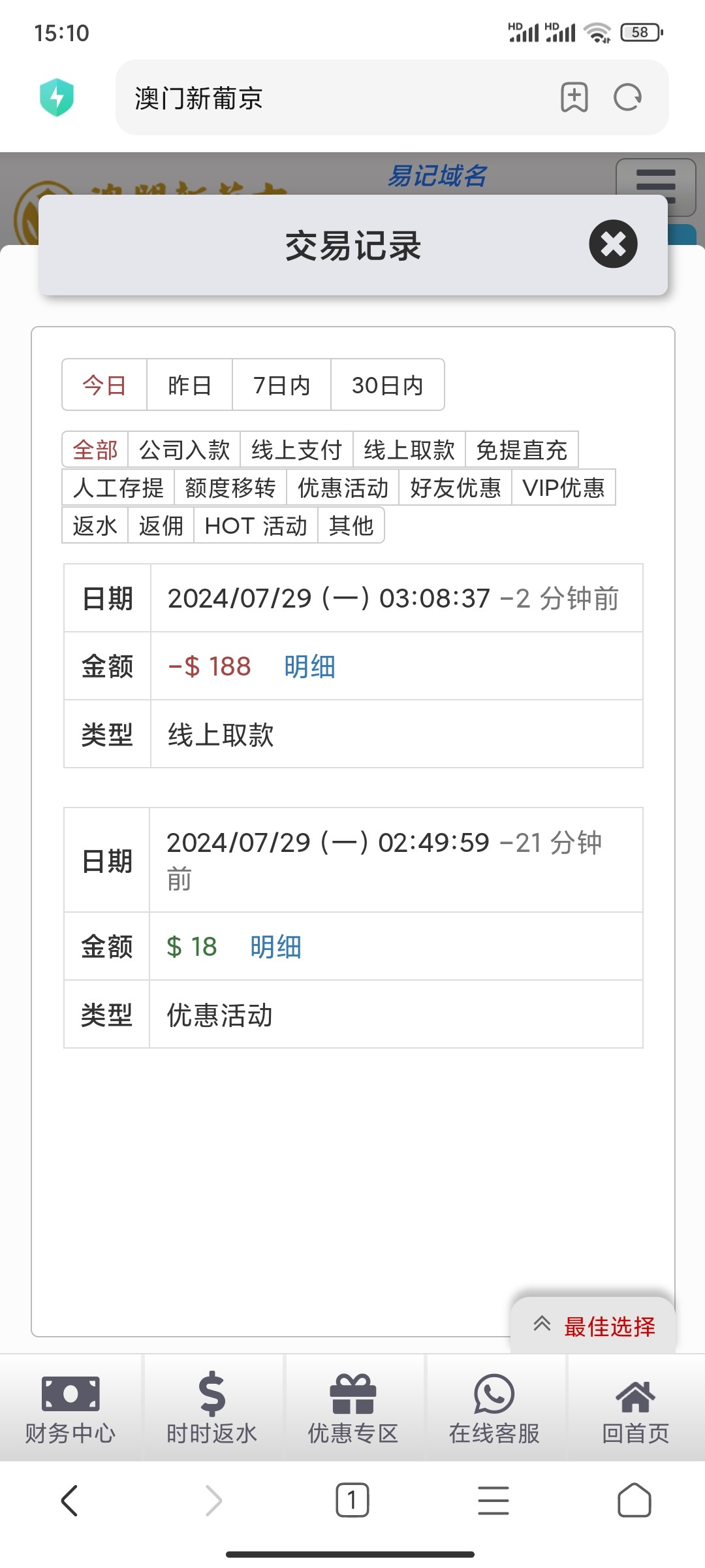 有个老哥 18上188,等了一个小时到账了,没充值
