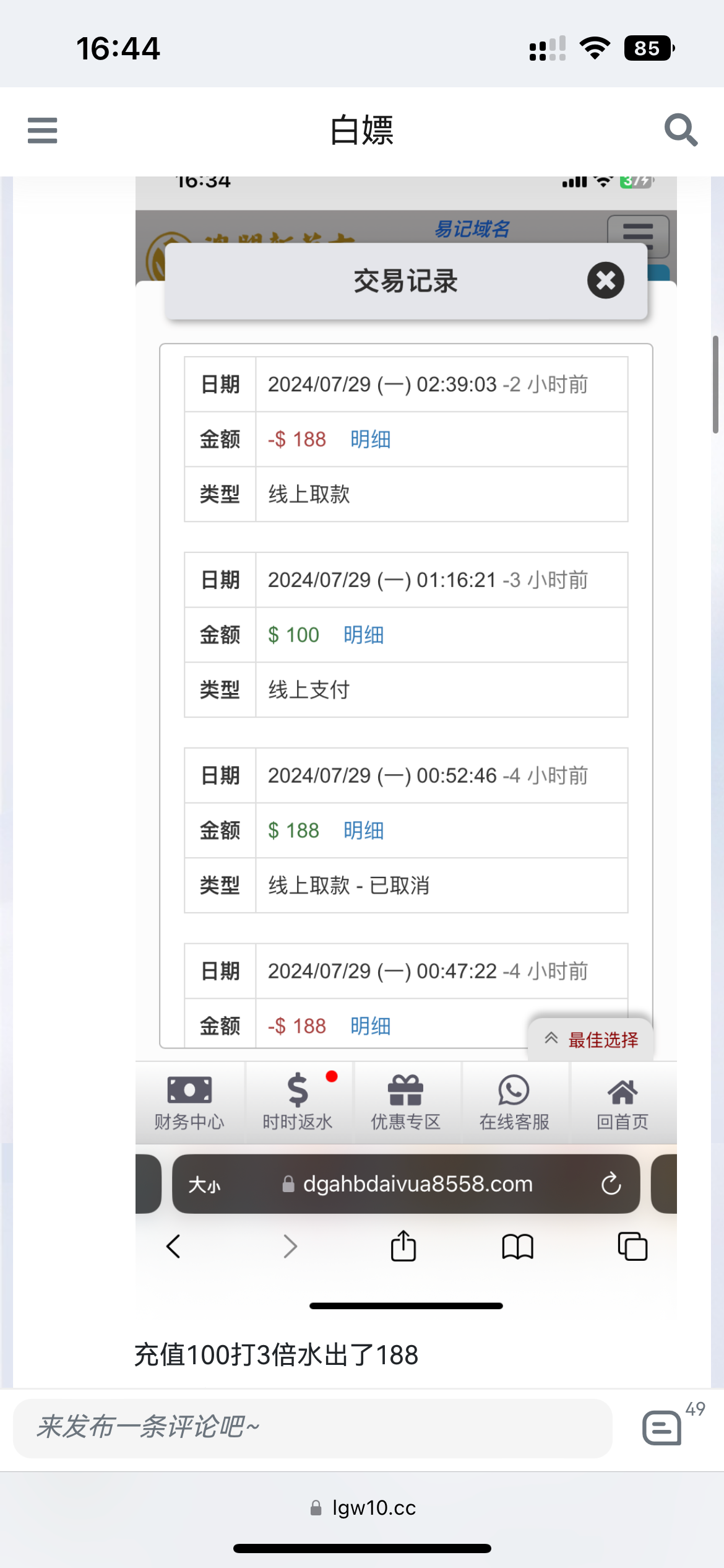 充值100打3倍水出了188