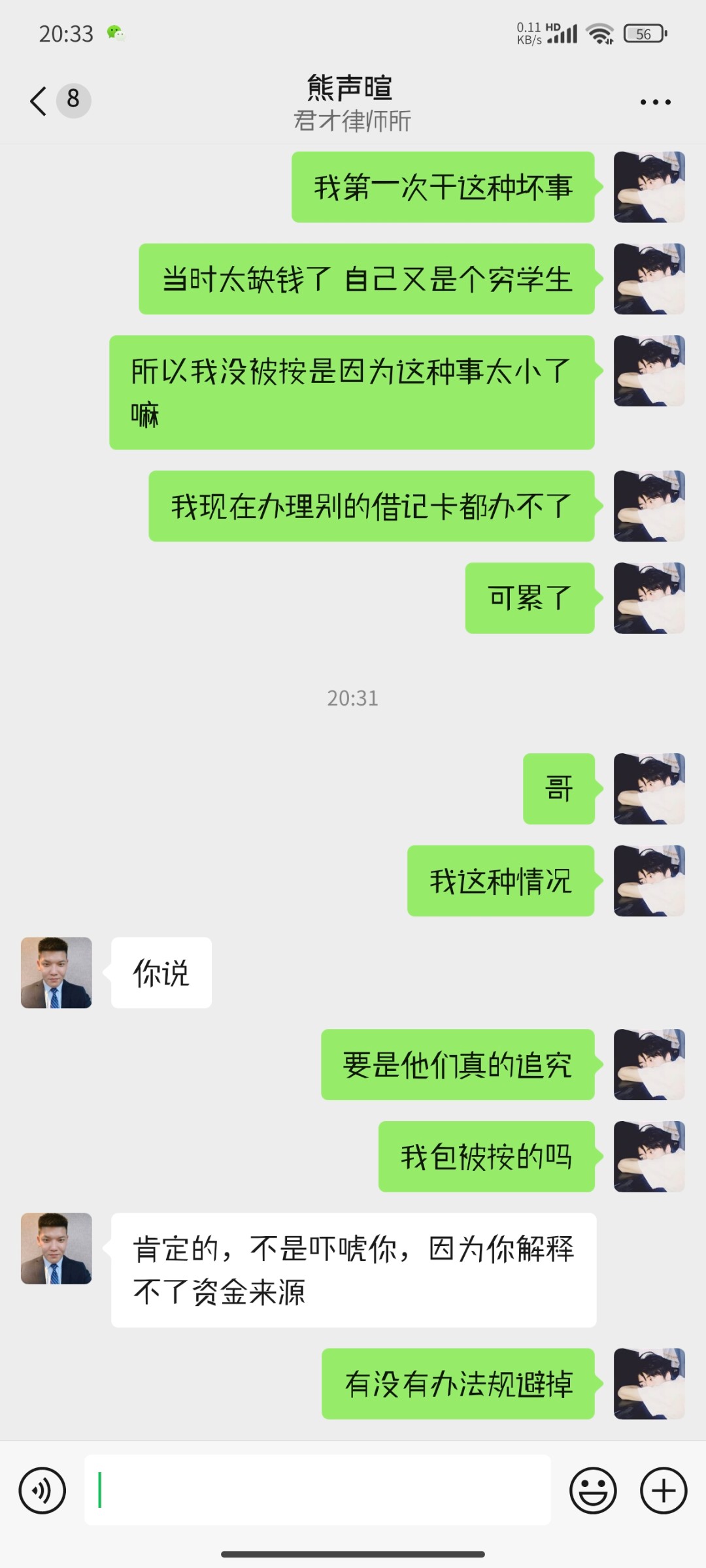 那时候真的穷怕了 接了一笔三千块的钱 压根不知道哪来的 然后我获利三百 然后银行那边就给我条短信 说我是涉案卡 我塔嘛为了三百块搞成今天这个局面 已经很影响生活了 我想不通我自己也不太懂法 然后我去问律师 最后我希望兄弟们 少做这种坏事 我也不知道该怎么处理 去问银行也是一副爱搭不理的样子 有没有懂行的老哥教教老弟 给老弟支个招呢