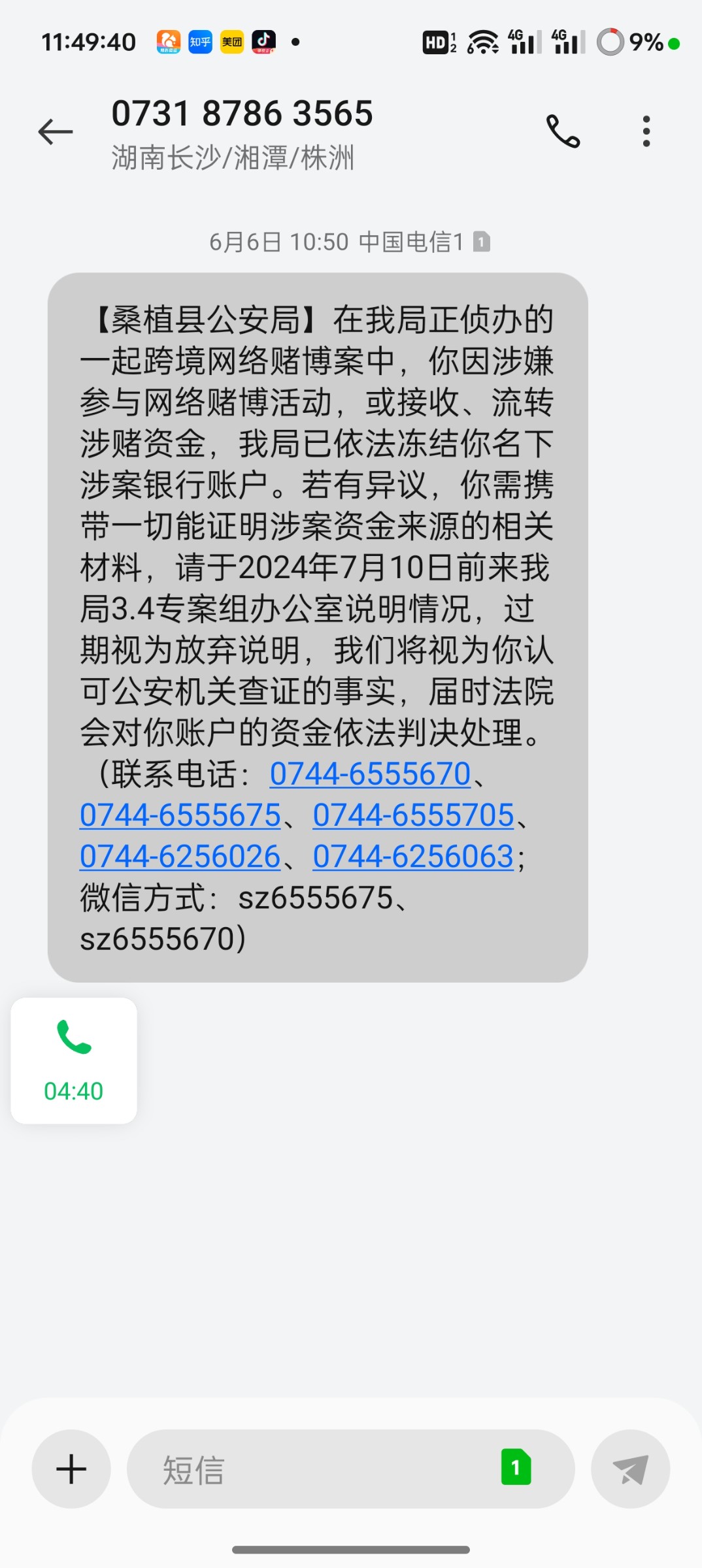 6月6收到的短信,我没去处理,到现在也没有冻结我银行卡。