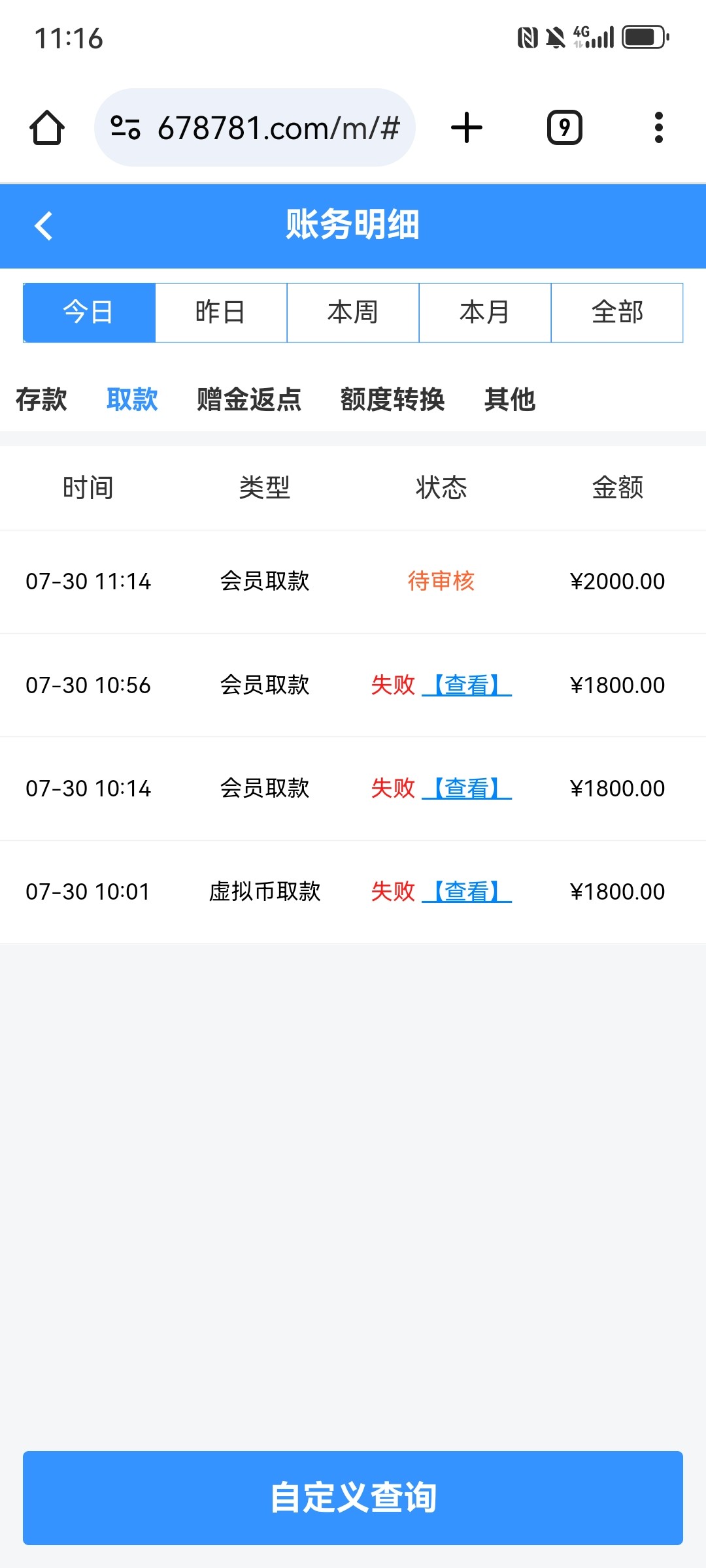 充值总共2000 一次没提过 昨晚打的反水今天上1800 抓紧提现结果 第一次提说要用银行卡 第二次联系客服罚3倍流水 怕不够打了7000多流水 提现完领了26彩金 又说26彩金要打流水 打完就说他们平台已经出款成功 现在第三方处理让我等 反正就是各种理由不给出 老哥们避坑吧 玩不得这种