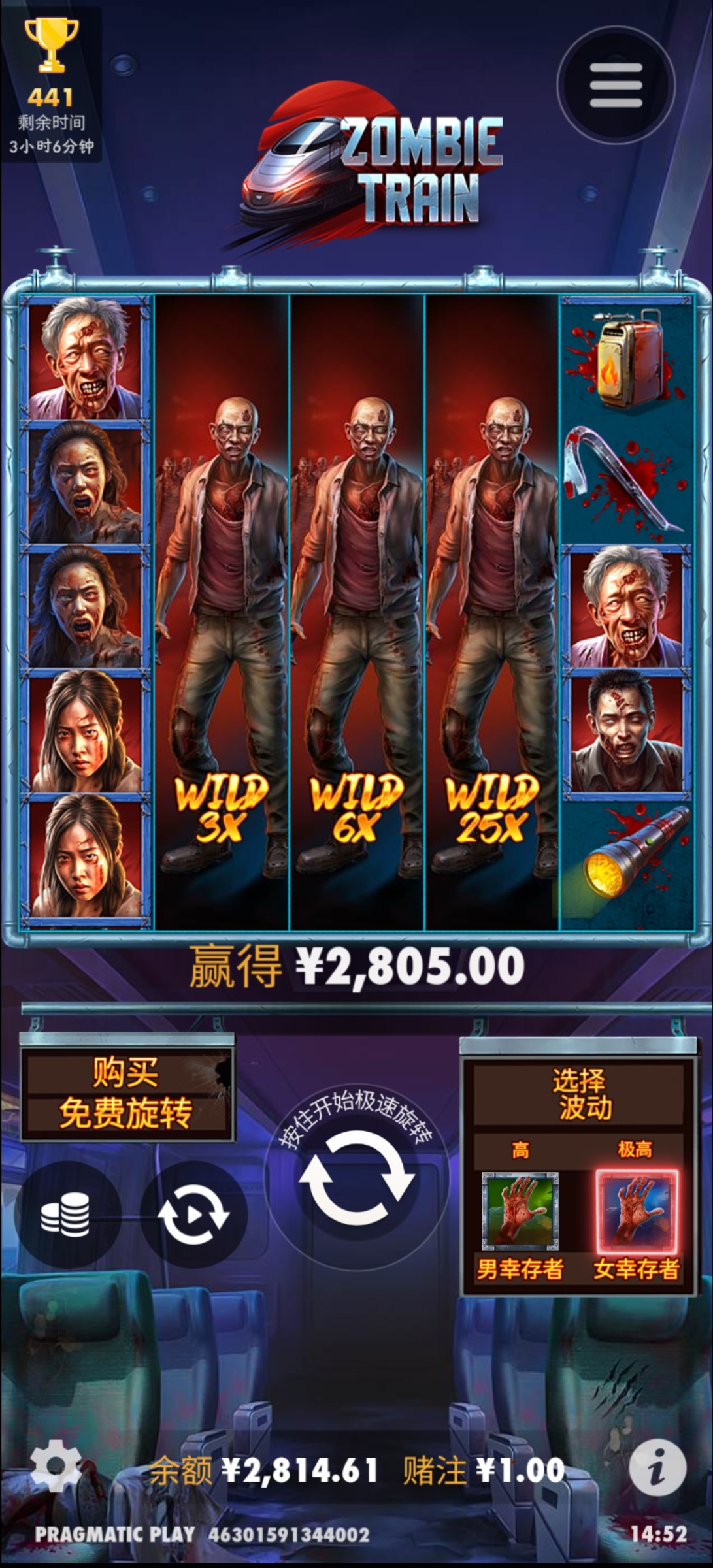 列车给了2805倍,吃上了,可惜哈迪斯没给,唉,给了应该也是两三千倍