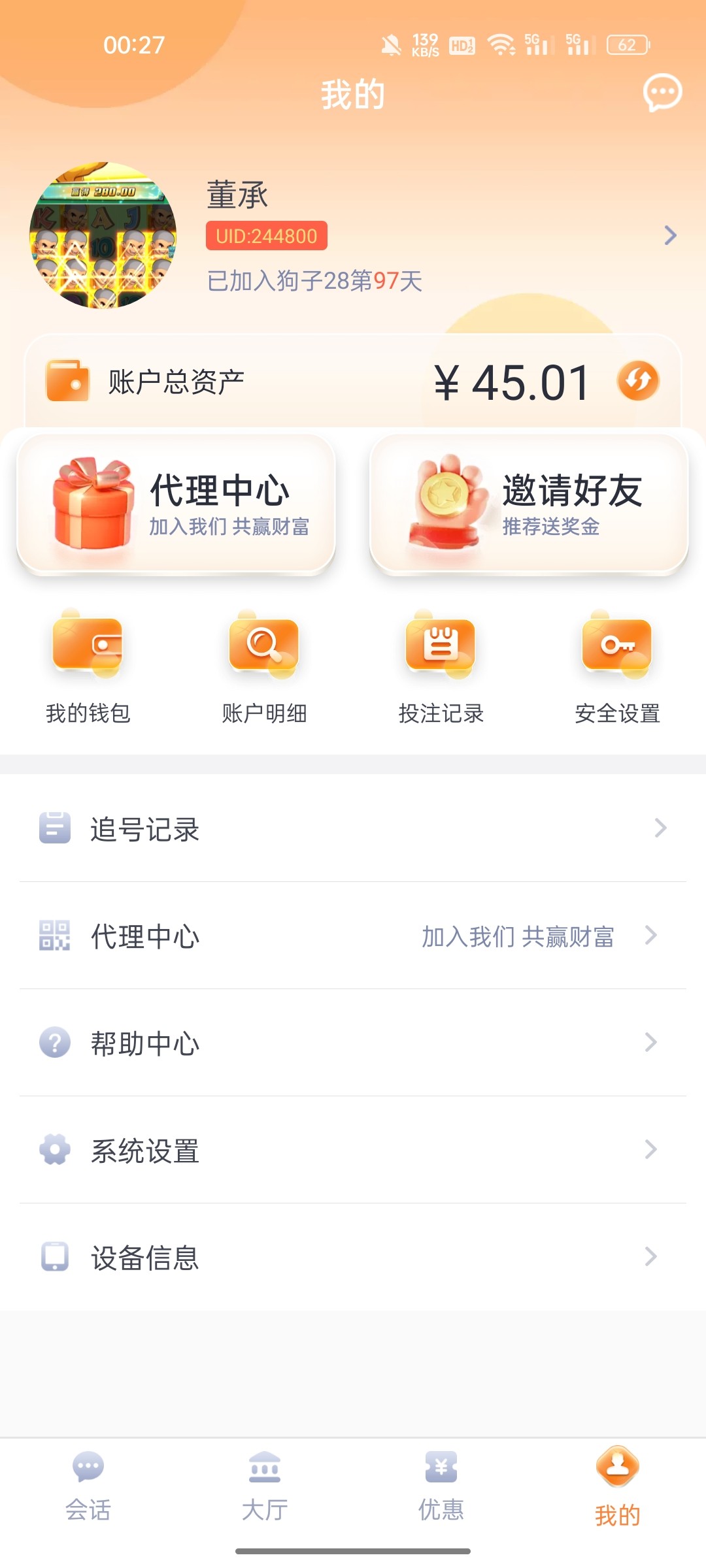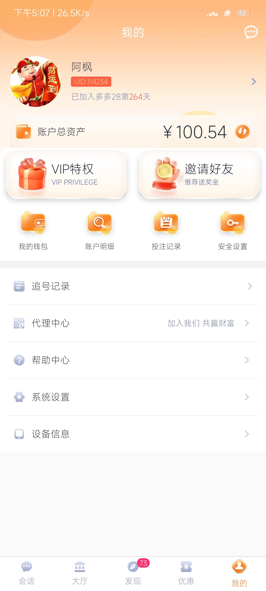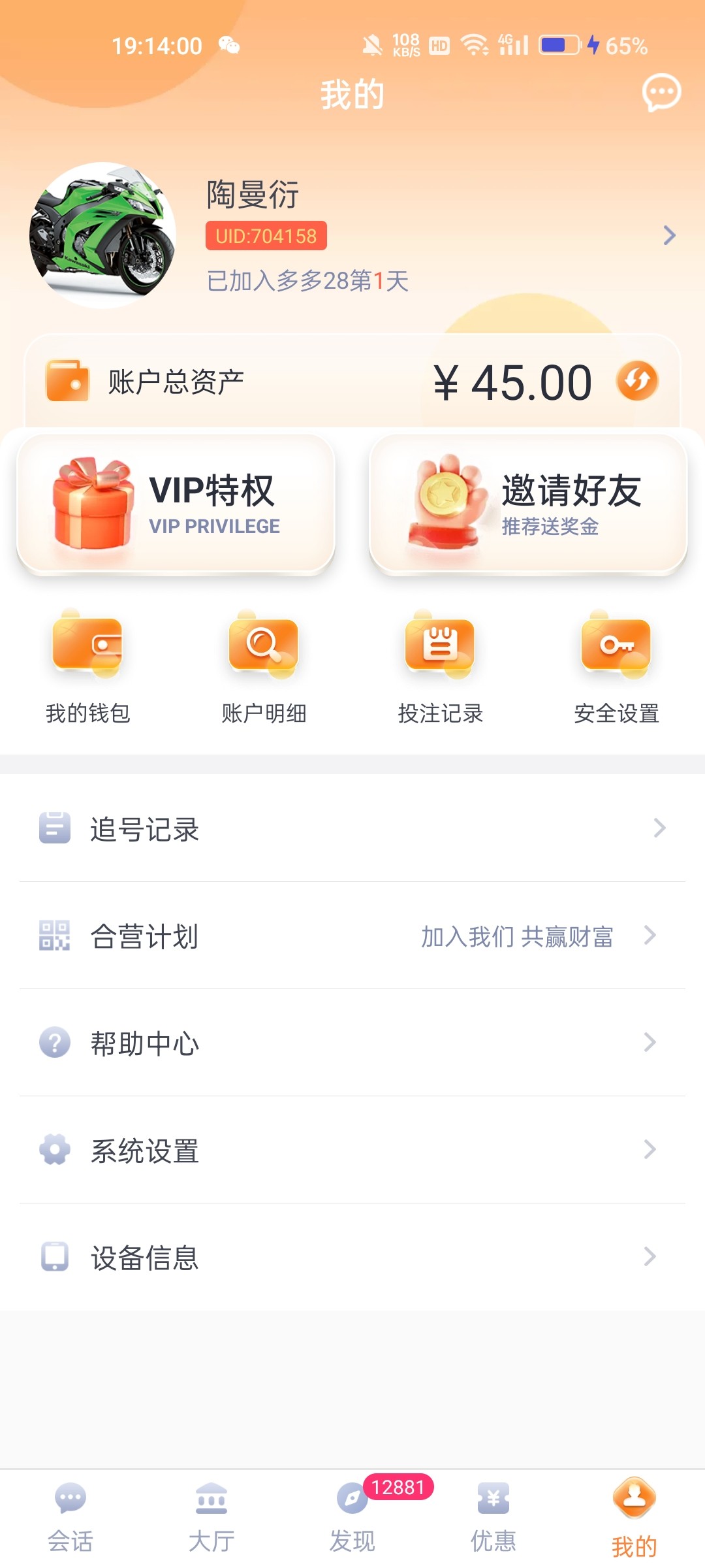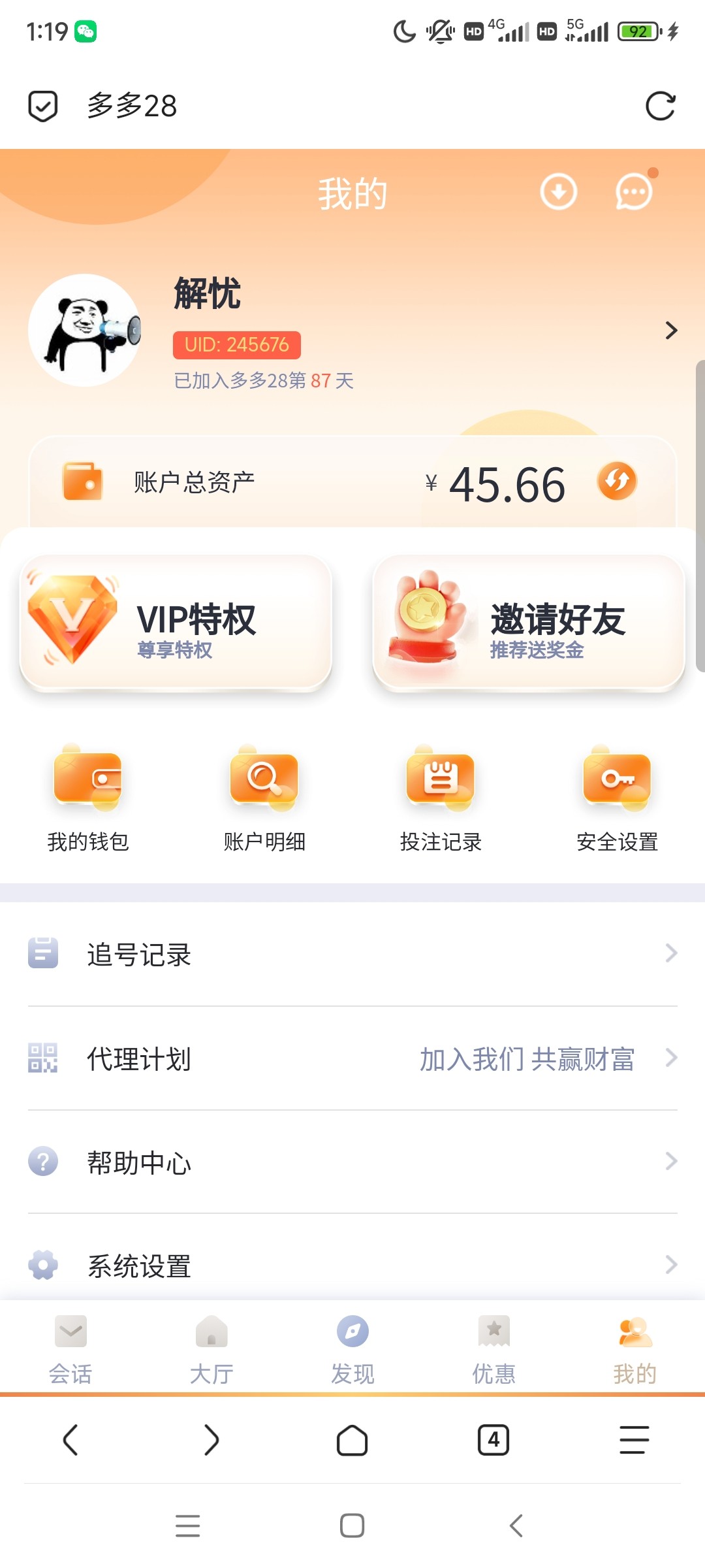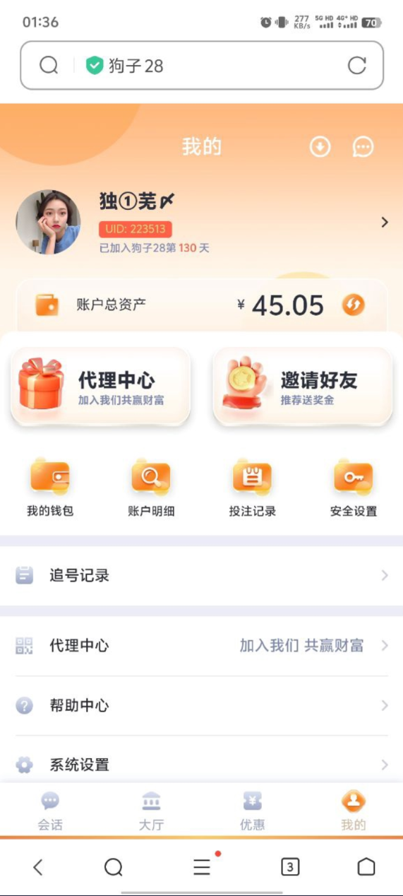 点击个人-消息看有无收到老哥私信