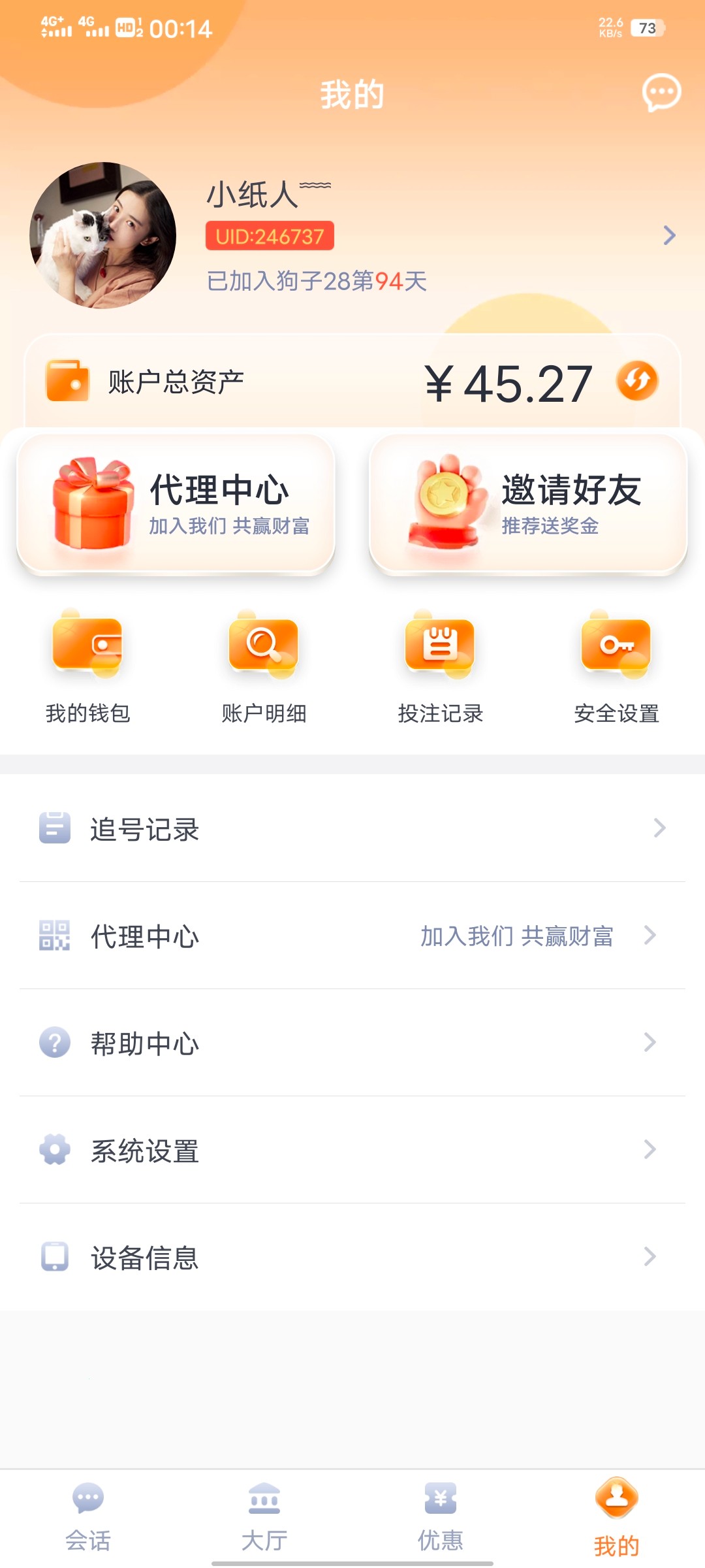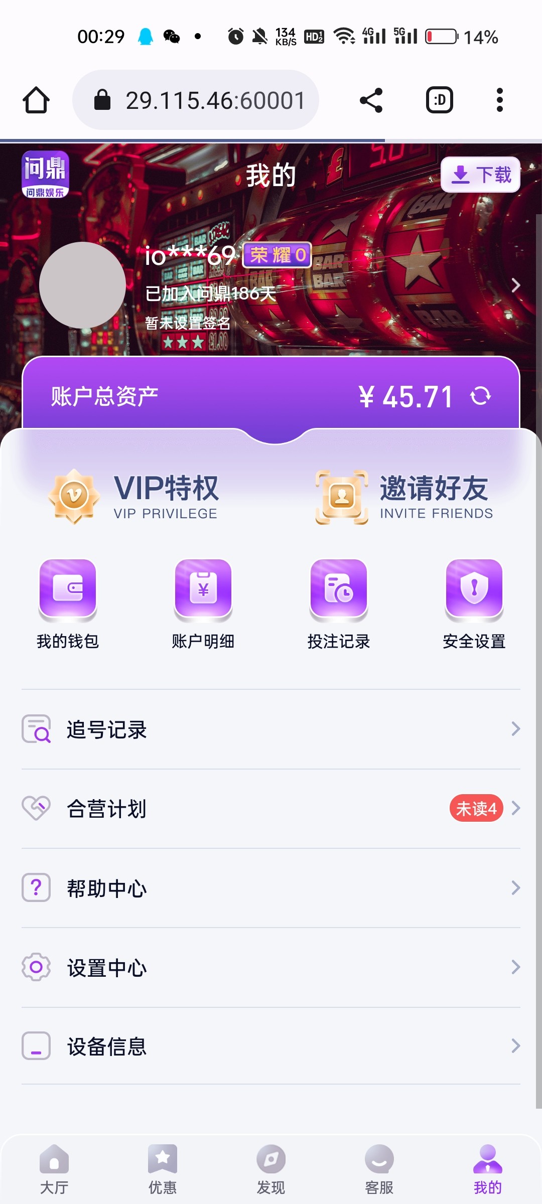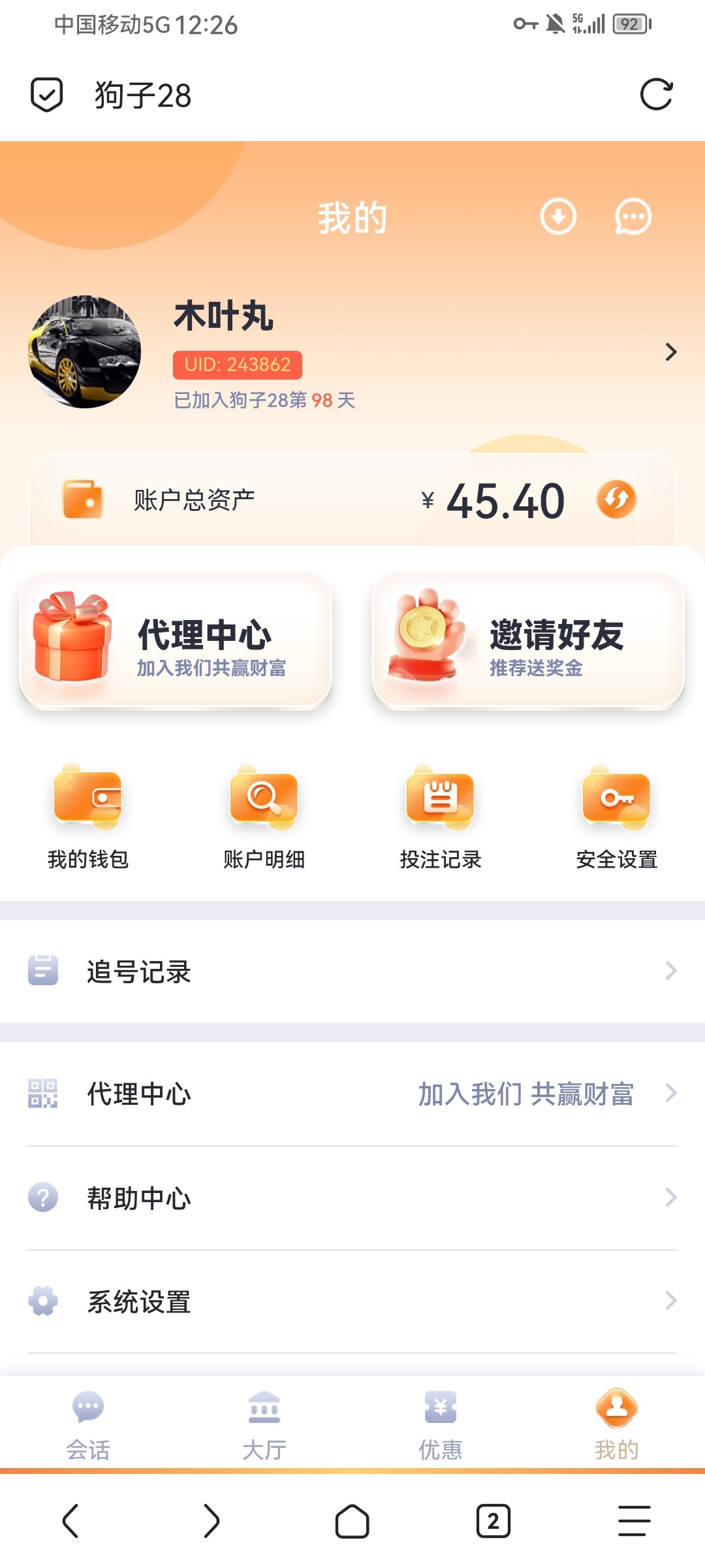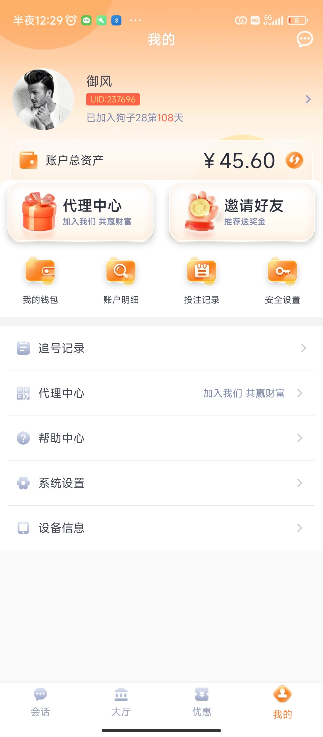 点击个人-消息看有无收到老哥私信