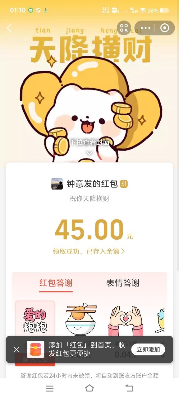 领到了,感谢老哥的华子,祝浪费8月份爆满倍