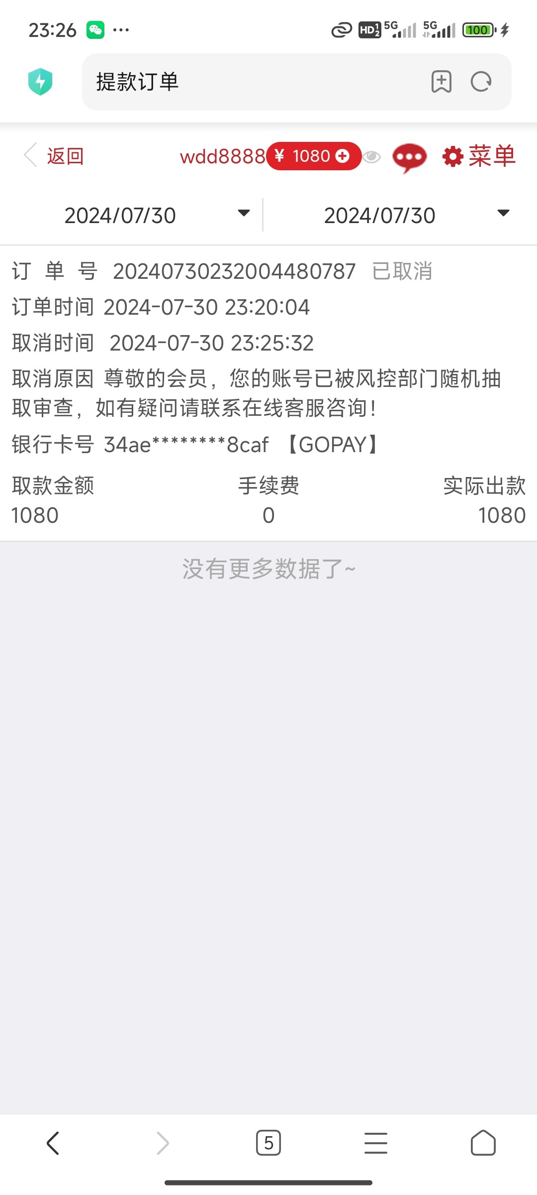 必赢3824黑台不给下分,特邀用户100送100八倍流水,一开始玩麻将就一直控分,差不多打了500流水,后来玩武圣,1.76给了158,差不多上了400左右,流水不够就一直刷,后来输到100换2.64的注,给了1100,提现说风控部门随机抽查到了,罚了3倍流水只能玩彩票,流水打完上了2000,之后我有提现不给下分,说我违规下注,又给罚了6倍流水,然后我就去玩分分六合彩,流水打完上了3100,提现一个多小时没动静,后来退回差不多20分钟就把余额全部扣除了,客服窗口直接被关闭打不开,各位老哥避雷