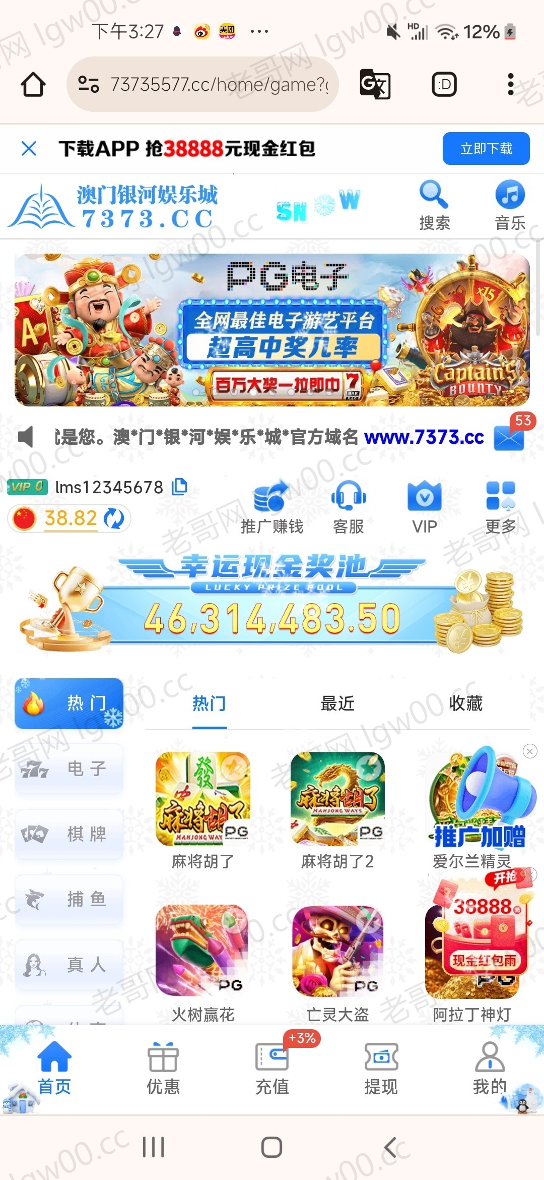 我是接到电话的,登录直接给38,有号的可以去试试,我提了300到了 地址 7373.cc
