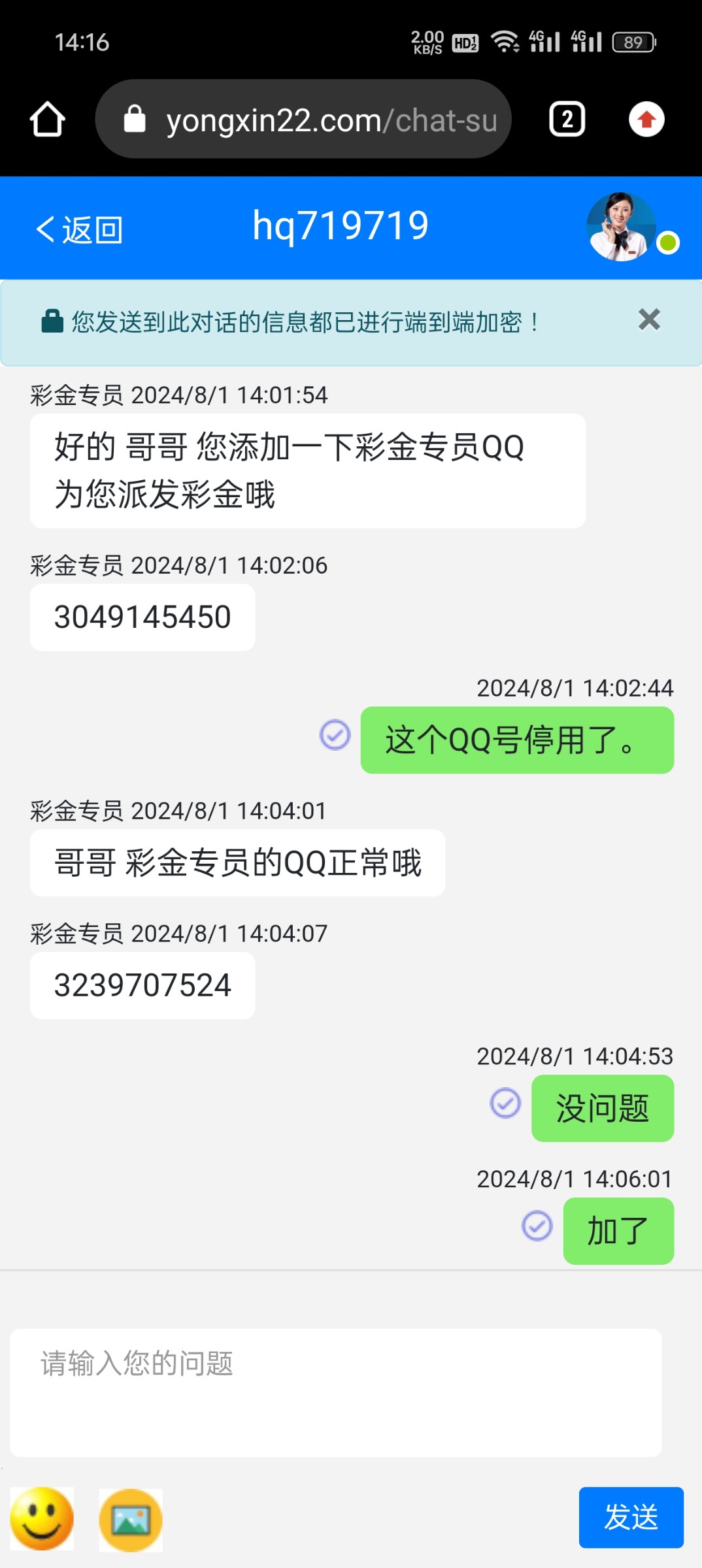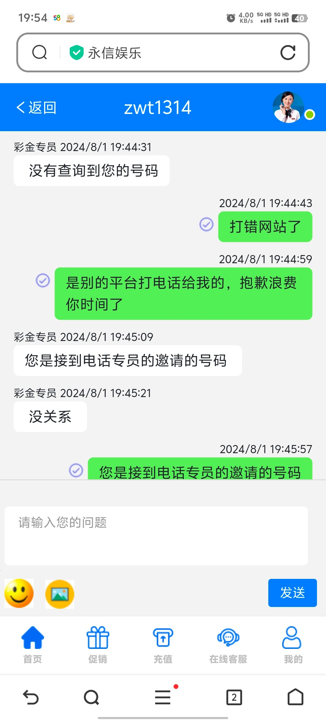客服那边都发不出去消息