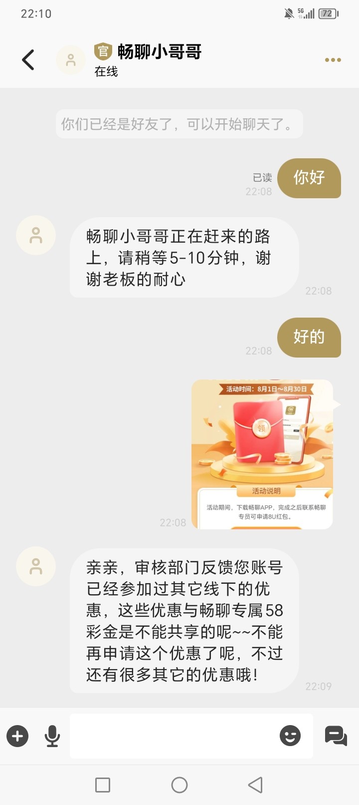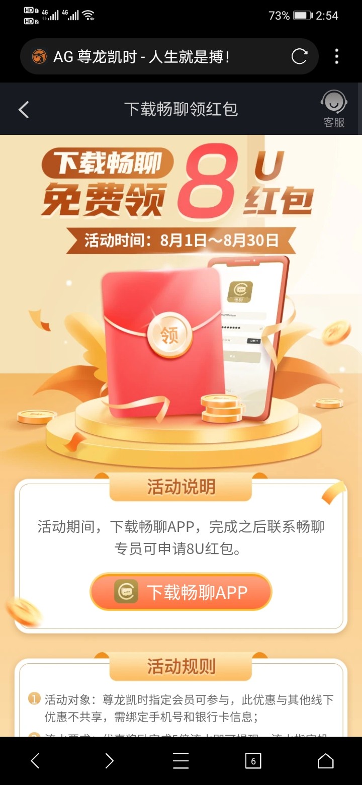 首页横幅广告里有个下载畅聊送58,我刚注册没充值过送了8u