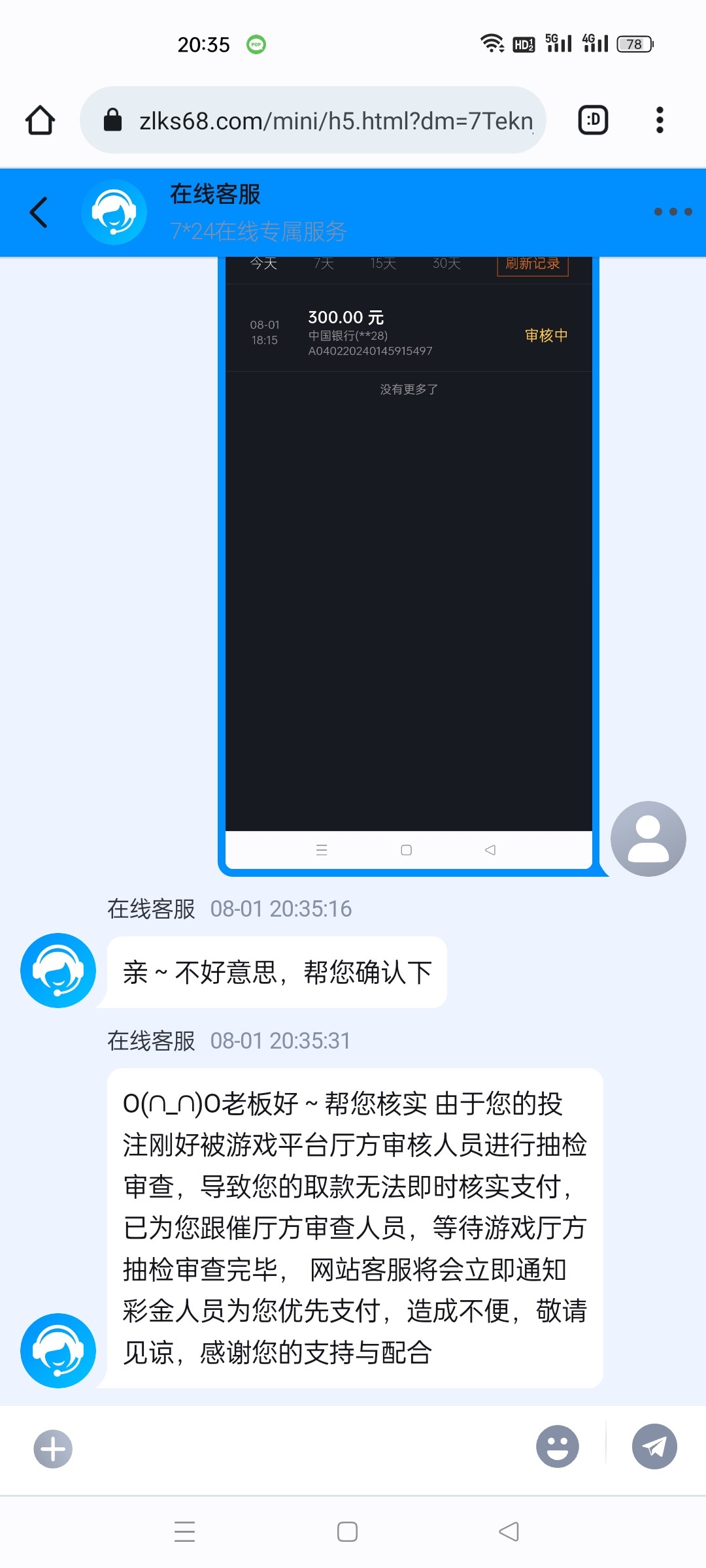 应该是黑了,前面客服说的等待商户打款。后面去问就这样说