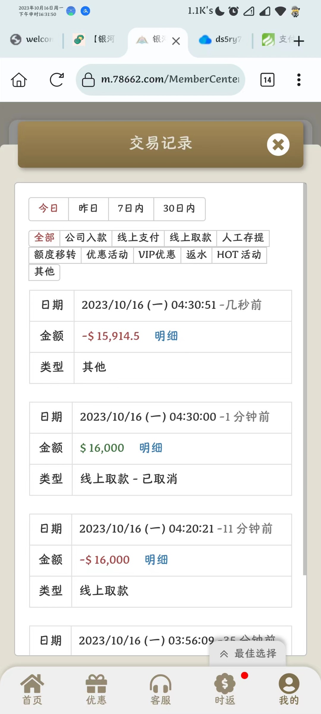 3016银河娱乐城爆的,当初不知道走的谁的下级,没担保,唉。现在想起来还是可惜。