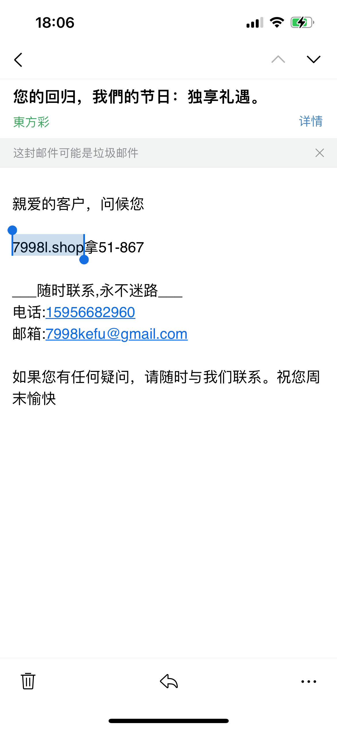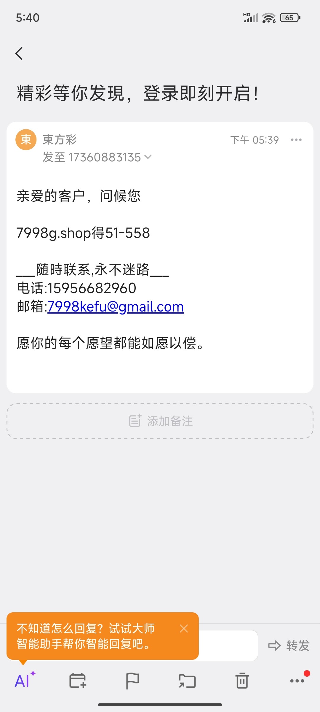 我收到邮箱没注意,刚刚打到了