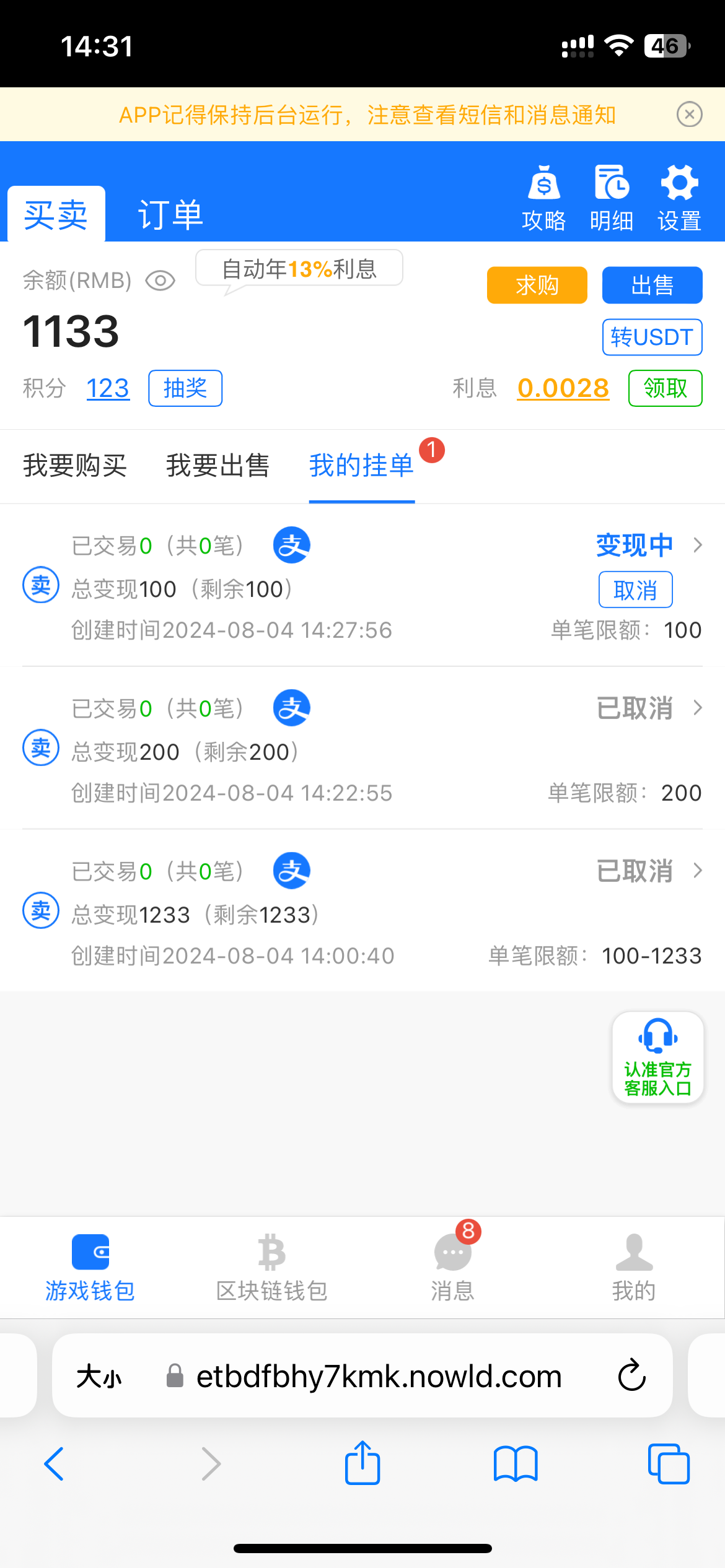 今天图方便搞no钱包提现1200没人买200还是没人买现在挂100还是没人买