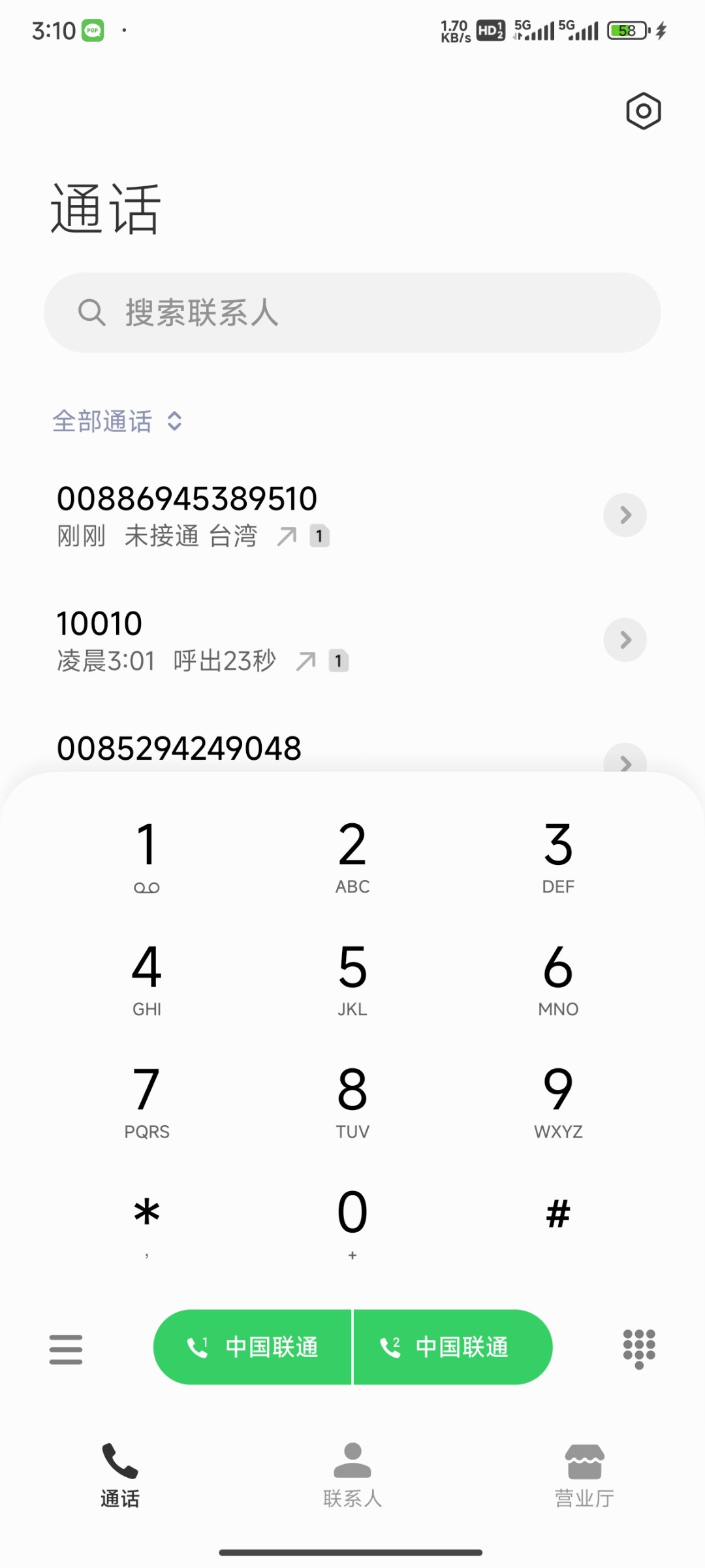 接到电话打过来的,试试能不能碰