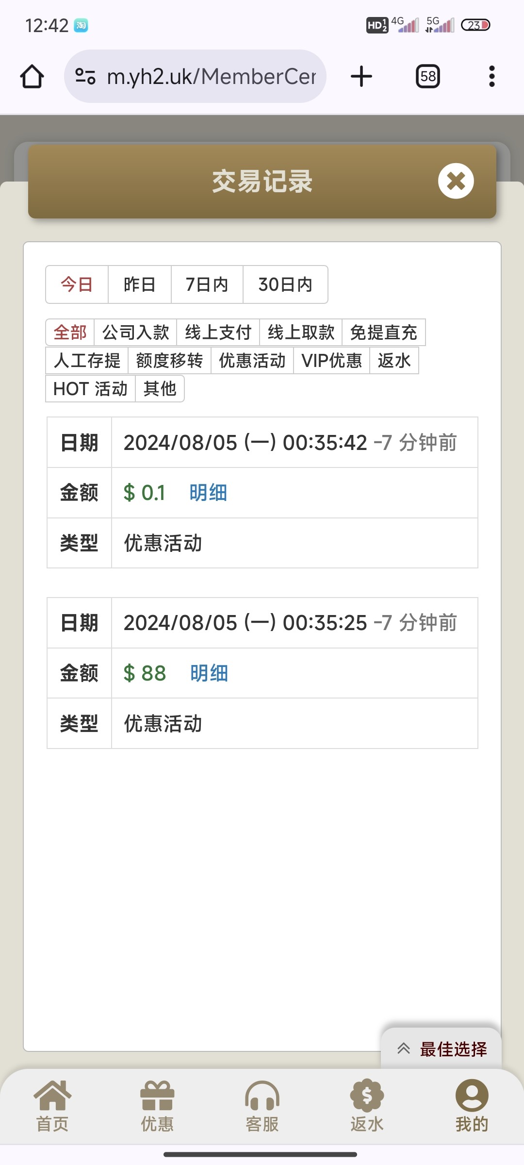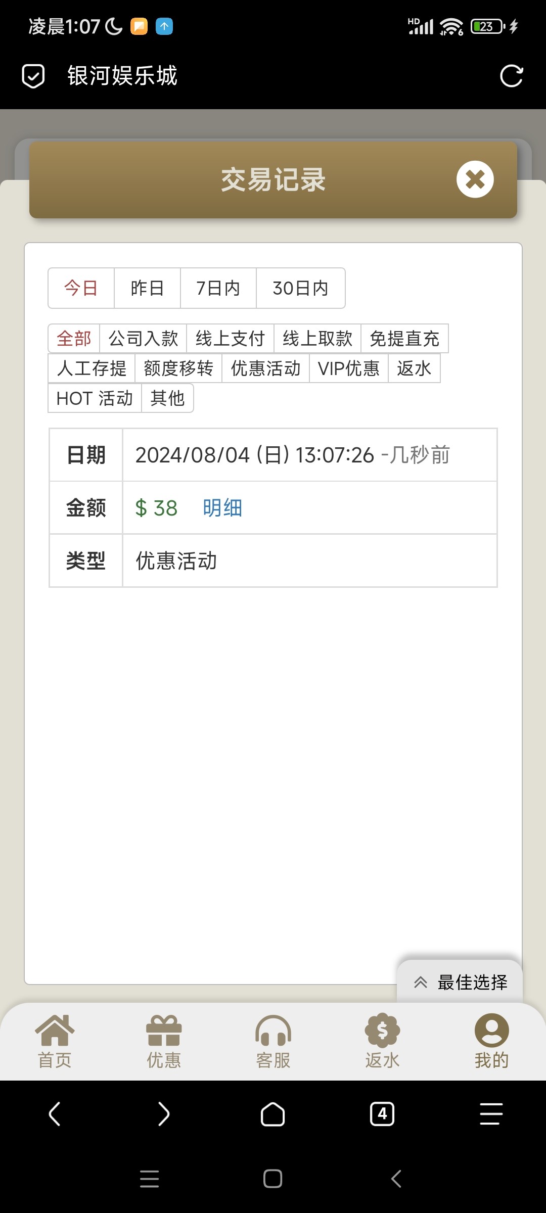 终于送了一次回访彩金,打死了,然后充值200又送了588,提了800