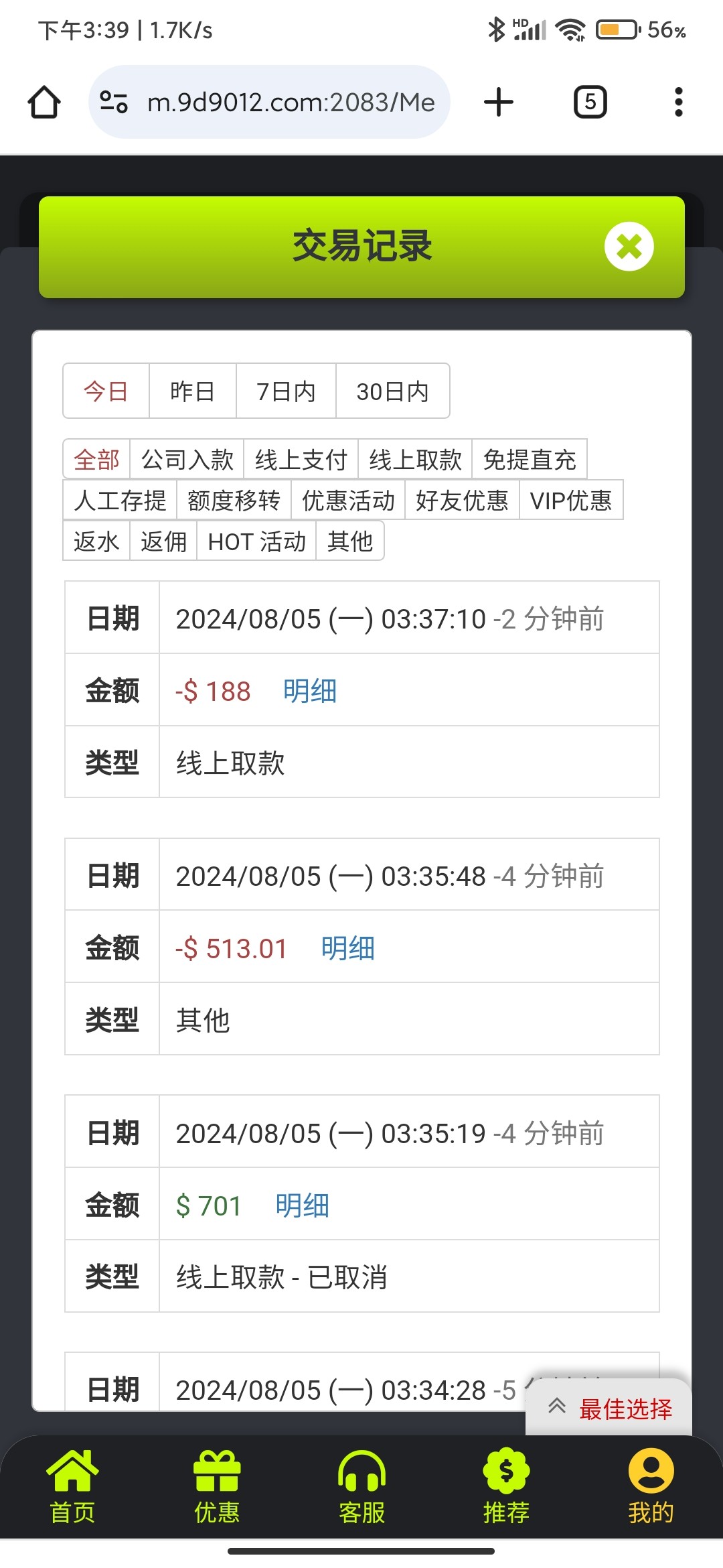 你们怎么能提这么多,刚刚打到188去玩牛牛运气好正好大一个花色搏一搏还中三倍,提款扣掉了五百,就到账188
