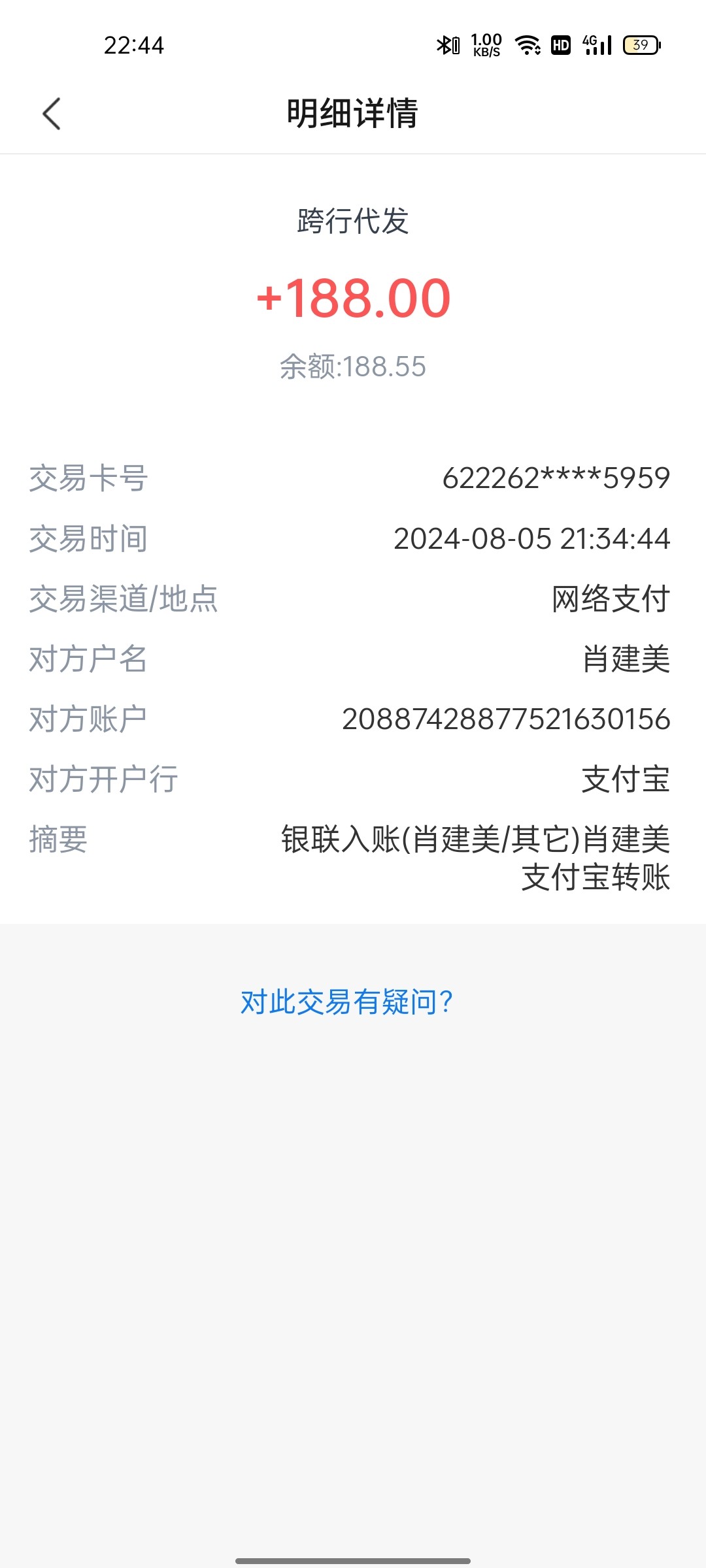 打到188还没到账
