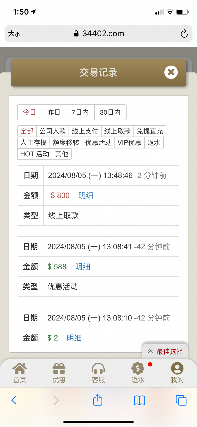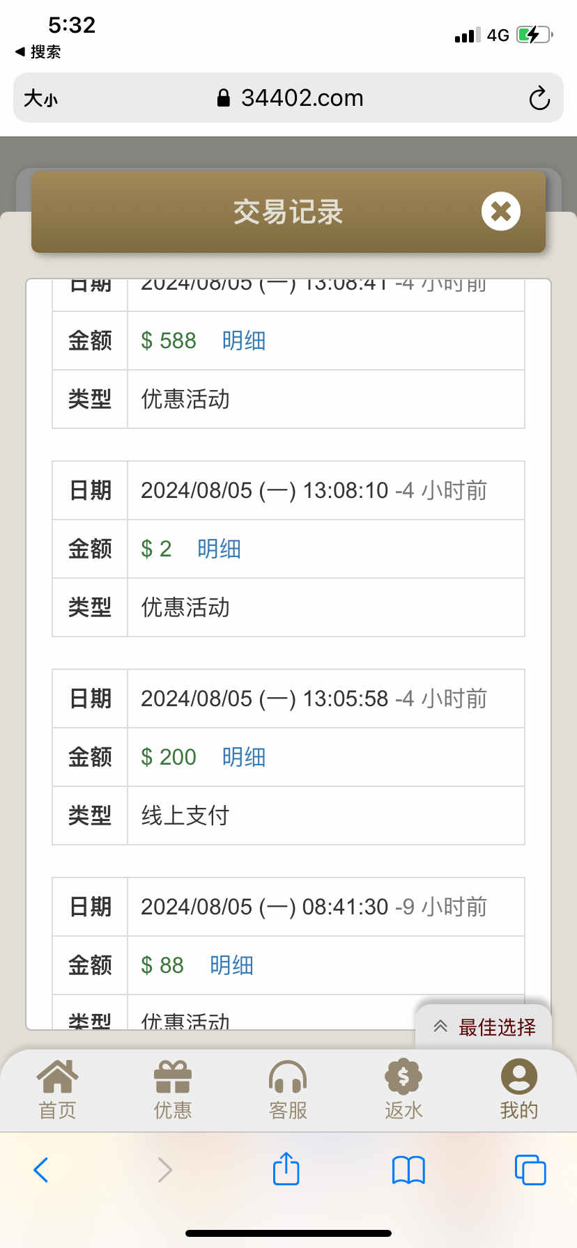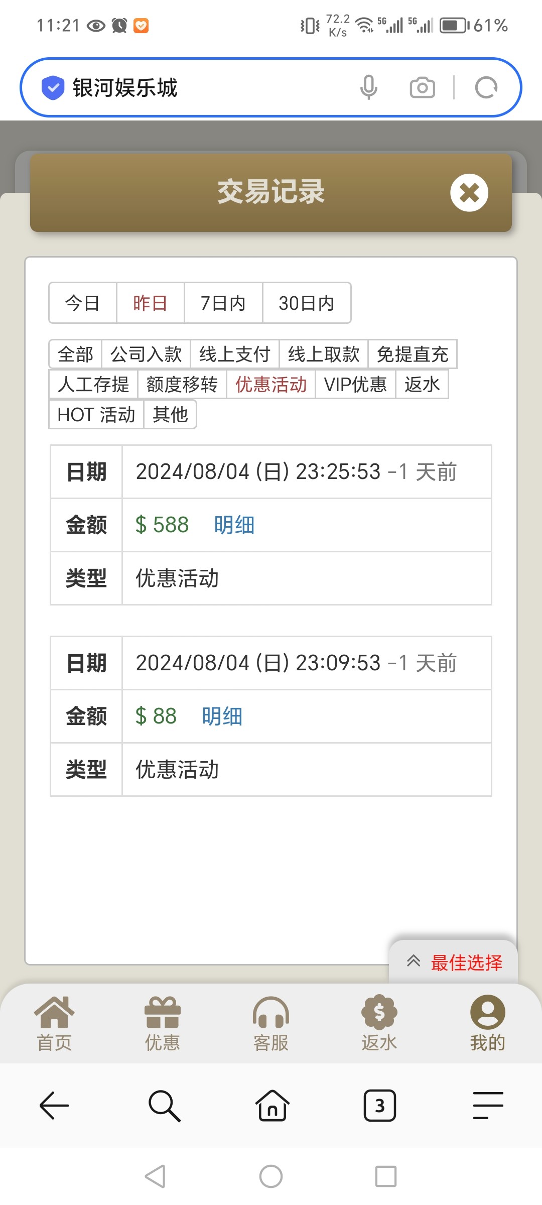 参加过200+88的应该会有电话回访记得接听 这是第二次接到回访 免费送88 说是存200再送188结果送我588 一倍流水闭着眼都能提500 最高上到1200 结果倒下400提了800 提款两分钟到账