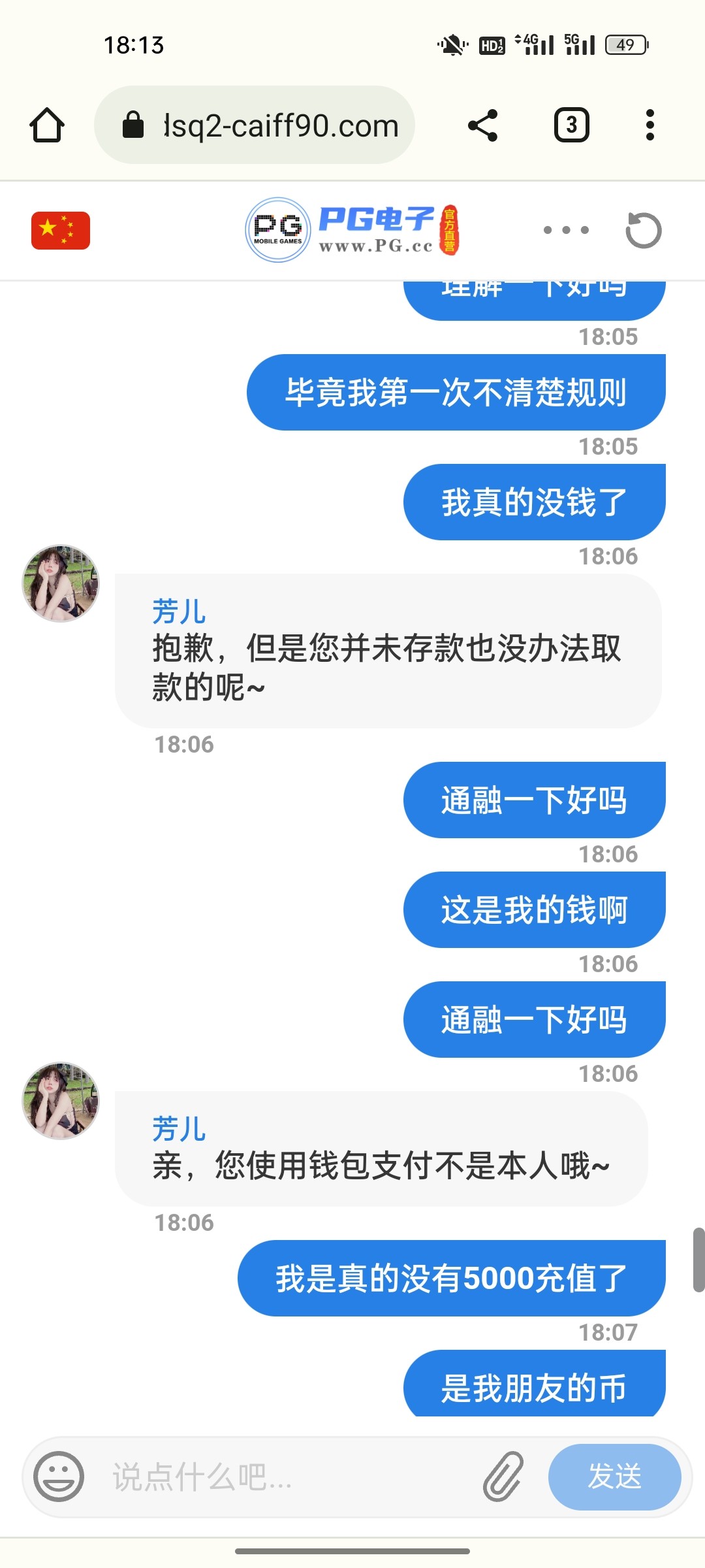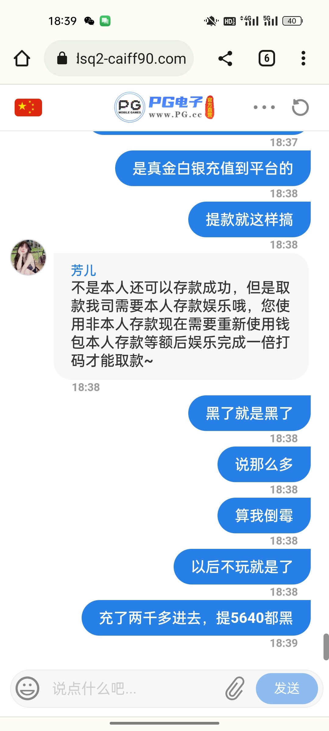 是不是前段时间刚刚升级的那个pg,网址pg60025,我也挨,用我媳妇ok币冲,提三千多要用自己的冲等额,我冲了给出了