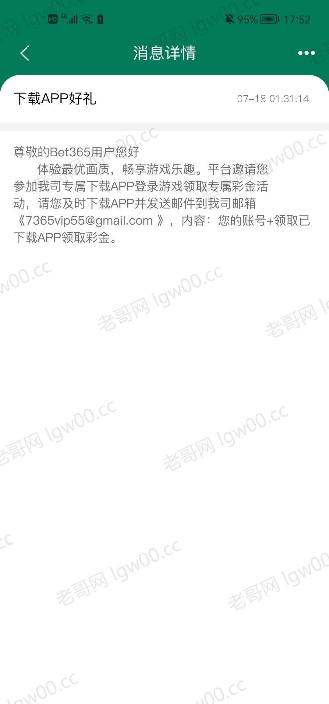 下载app发邮件送18 我是发了邮件五分钟左右就给我送了,新用户无视网址 7365.com