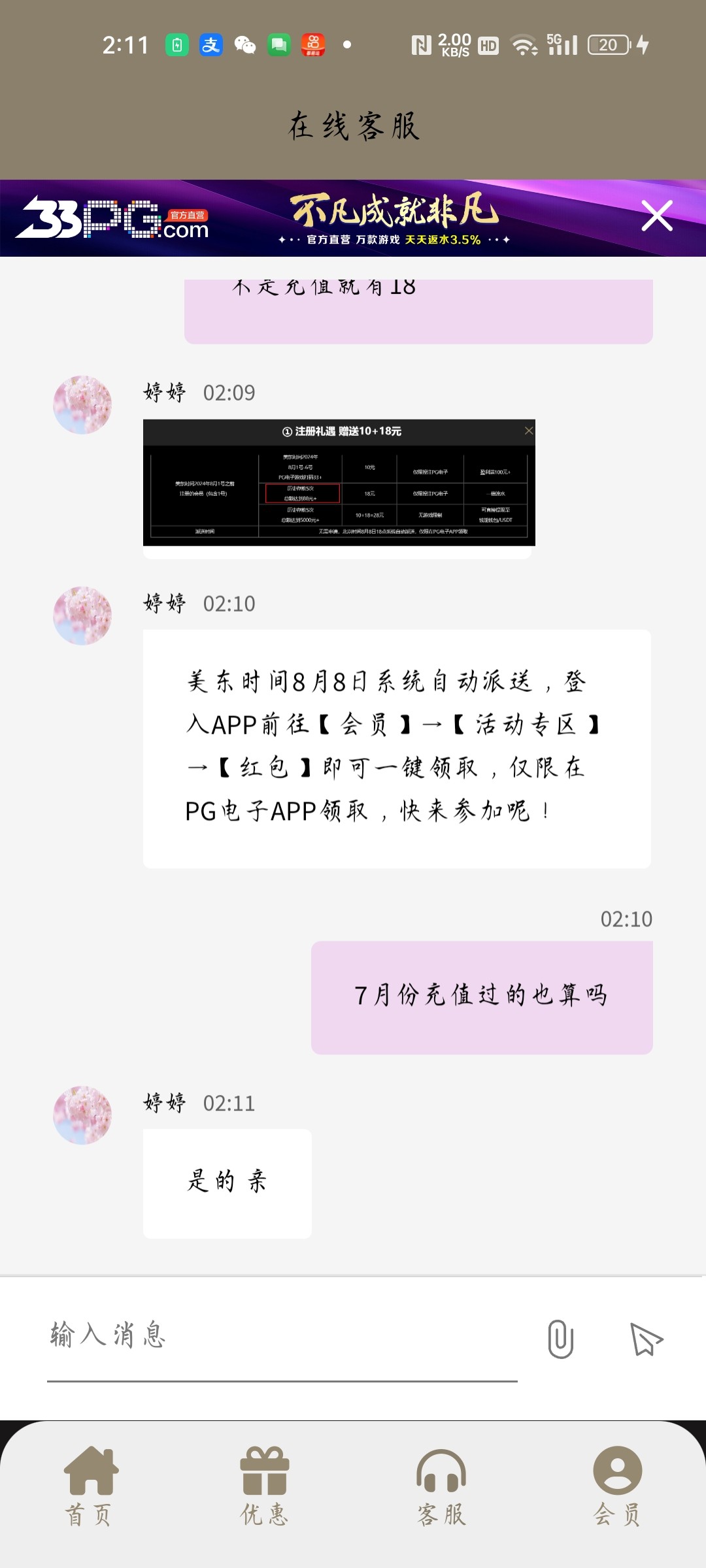 没充值过的特邀的送10 充值过的送18 具体活动看图老哥们 33pg.com
