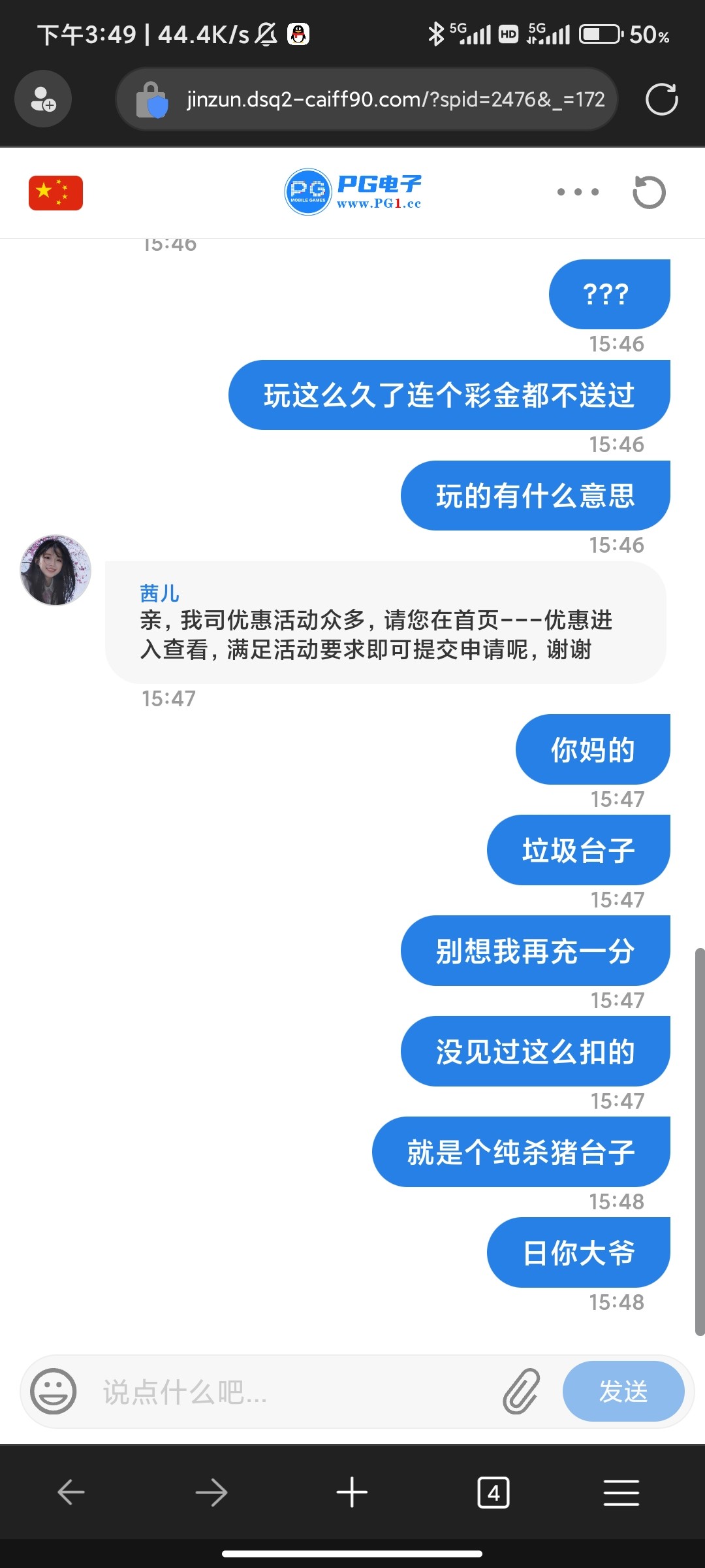 傻逼台 之前一直玩 都马上到v8了 结果把我所有优惠 都停了 还叫我继续充值 傻子才继续玩