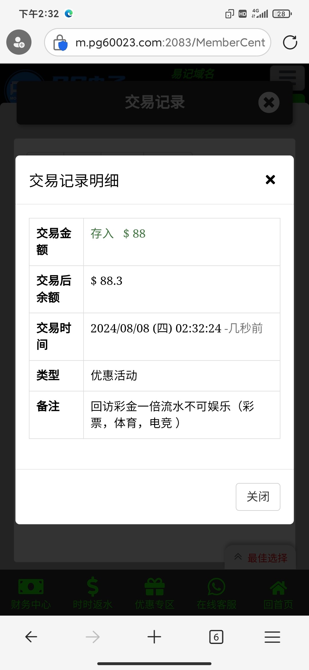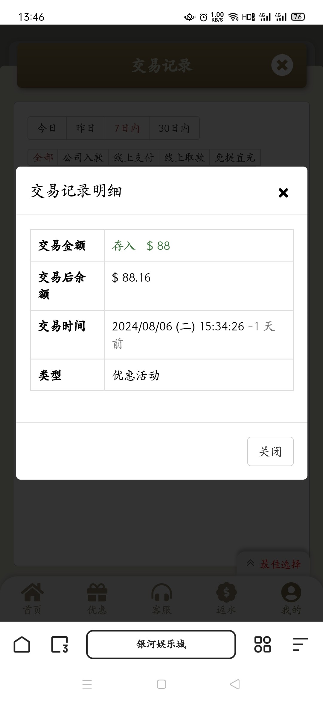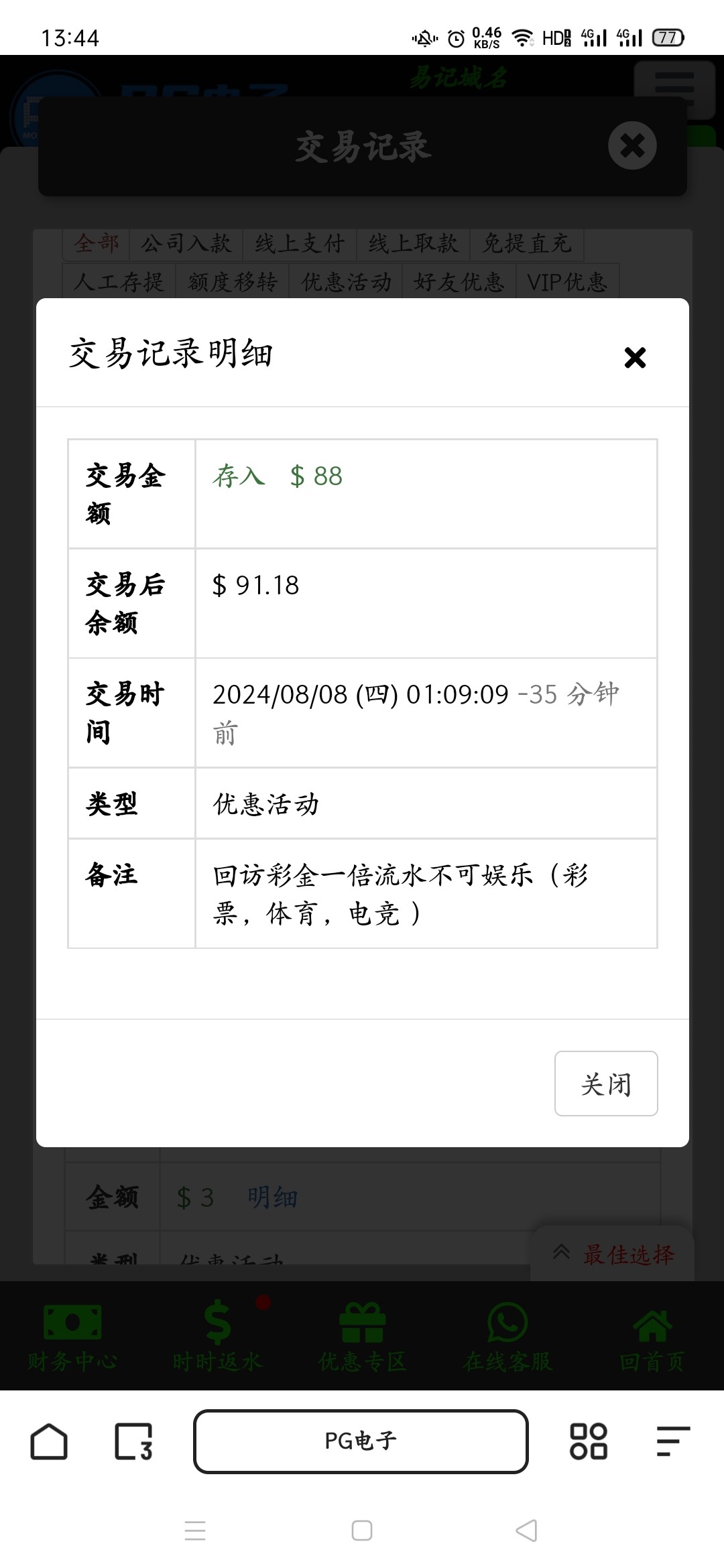 登录上去发手机号跟客服说电话回访彩金 有就有 没有就无视 我没接到电话碰到了 还有老哥稳台区的银河3016 也是一样的操作 两个台子都给了88