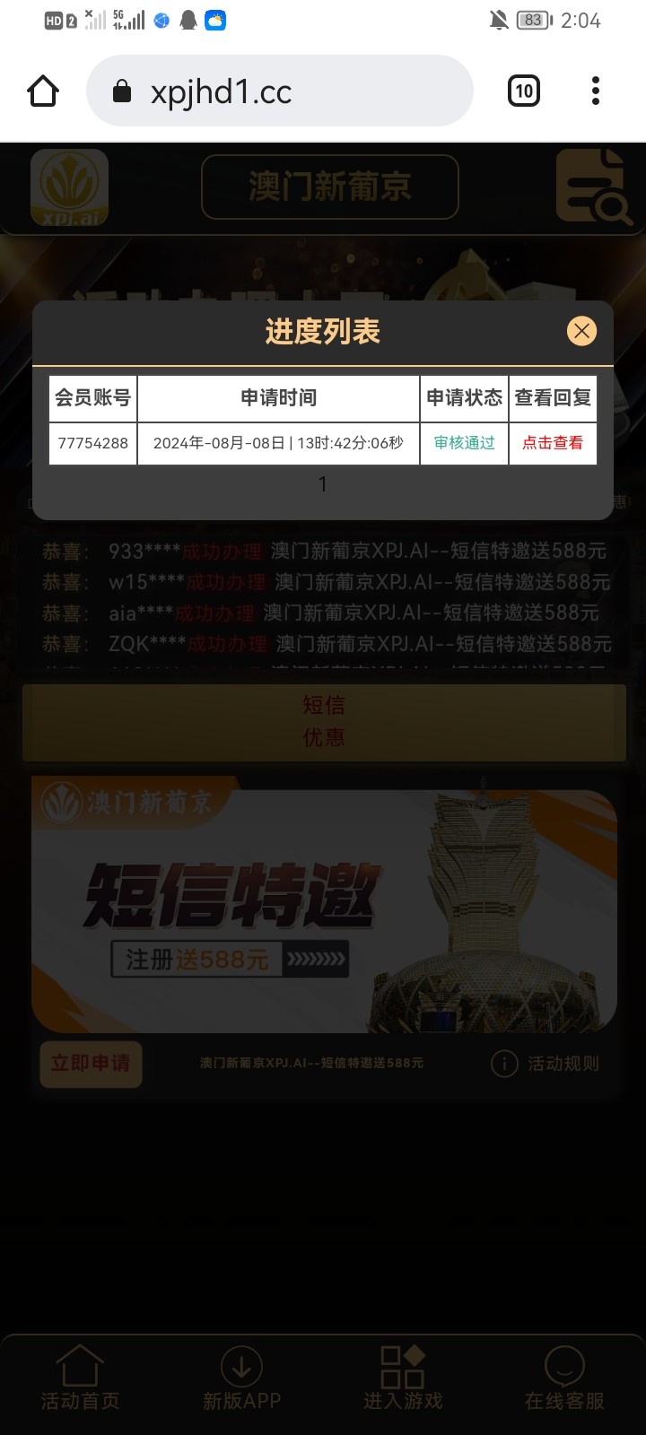 短信特邀,可以申请一期彩金8块,提现自测,没什么水