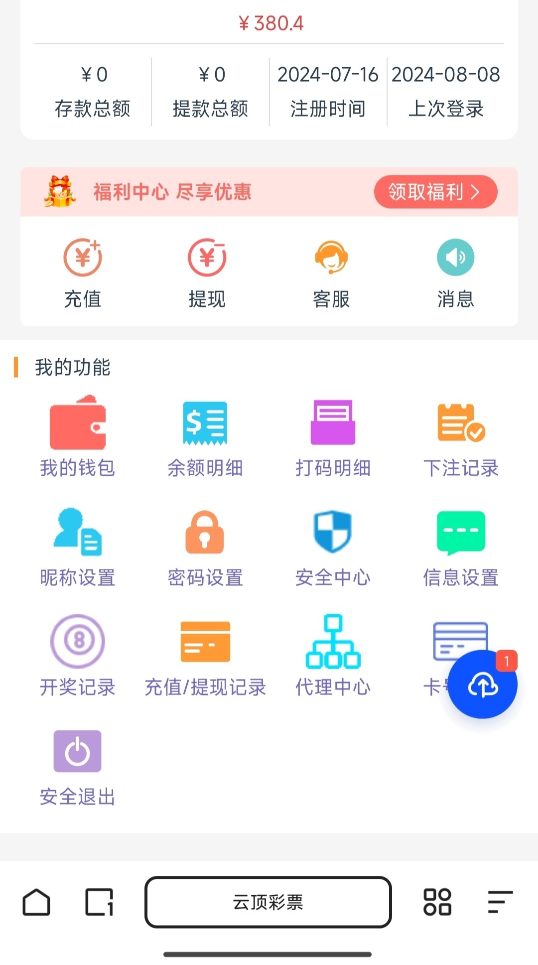 几个彩票台回馈打上去了,之前东方提现了两次,两张卡都被封掉了,现在打上去都不敢提