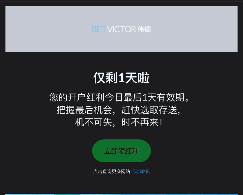 前几天发的伟德 今天收到邮件 有免费旋转可以参加 体育红利 旋转不是百分百中 有号的兄弟可以去看看 只为白嫖 严禁充值!