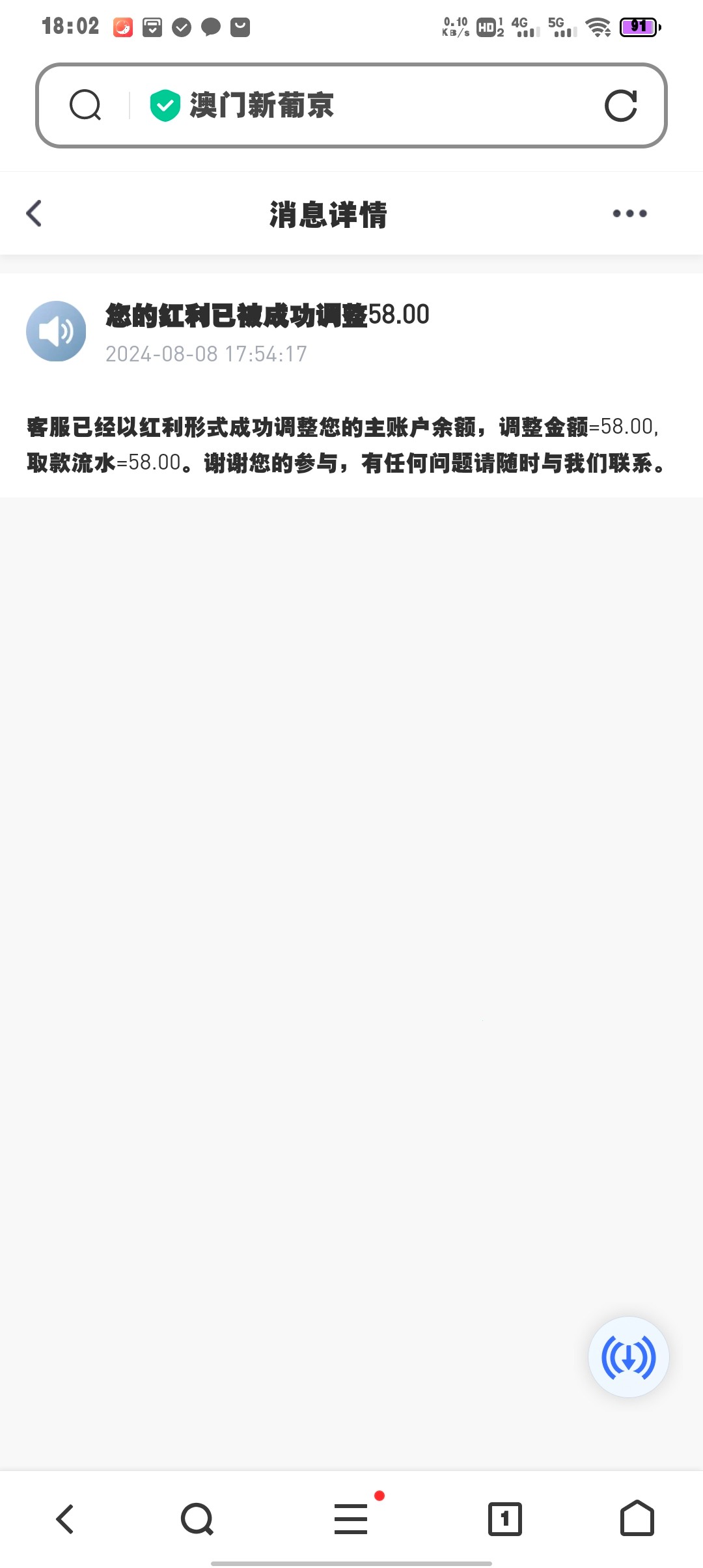 新葡京送58电话打来的 可以去碰瓷 不送的注册等电话就行 我注册6天才来电话的 找客服申请 我没有打出来 只能玩真人